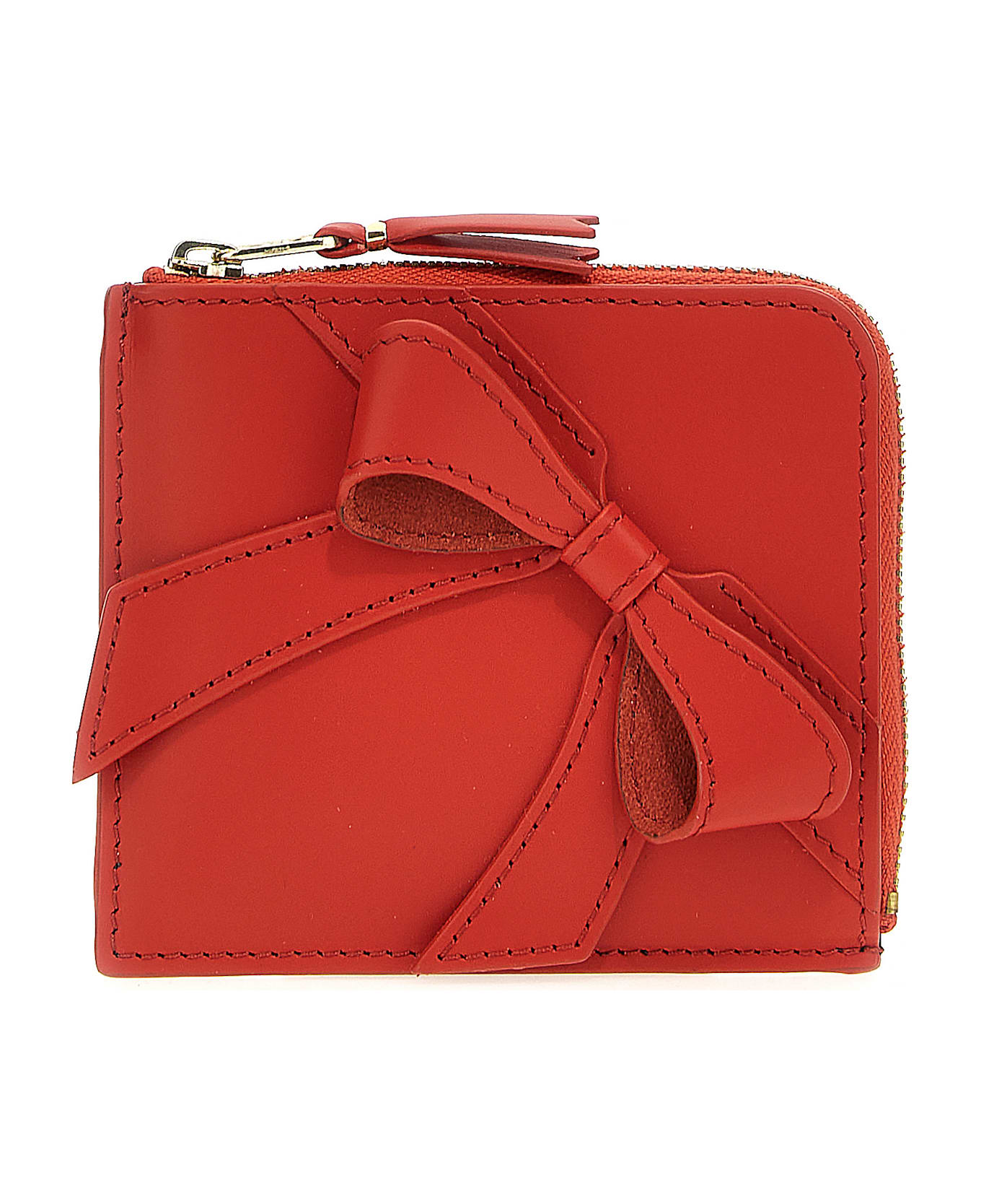 'Big Bow' leather wallet with front bow detail, zip closure.