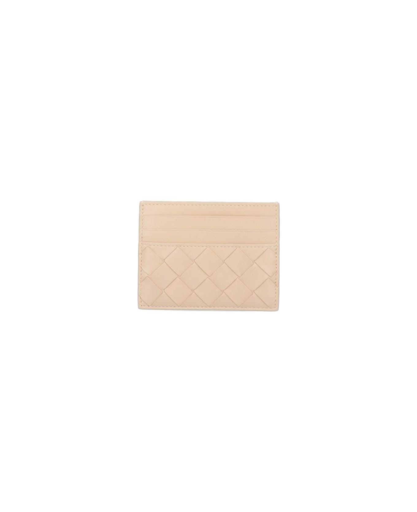 Bottega Veneta intrecciato card holder, cream leather, iconic intrecciato pattern, one main flat pocket, six card slots.