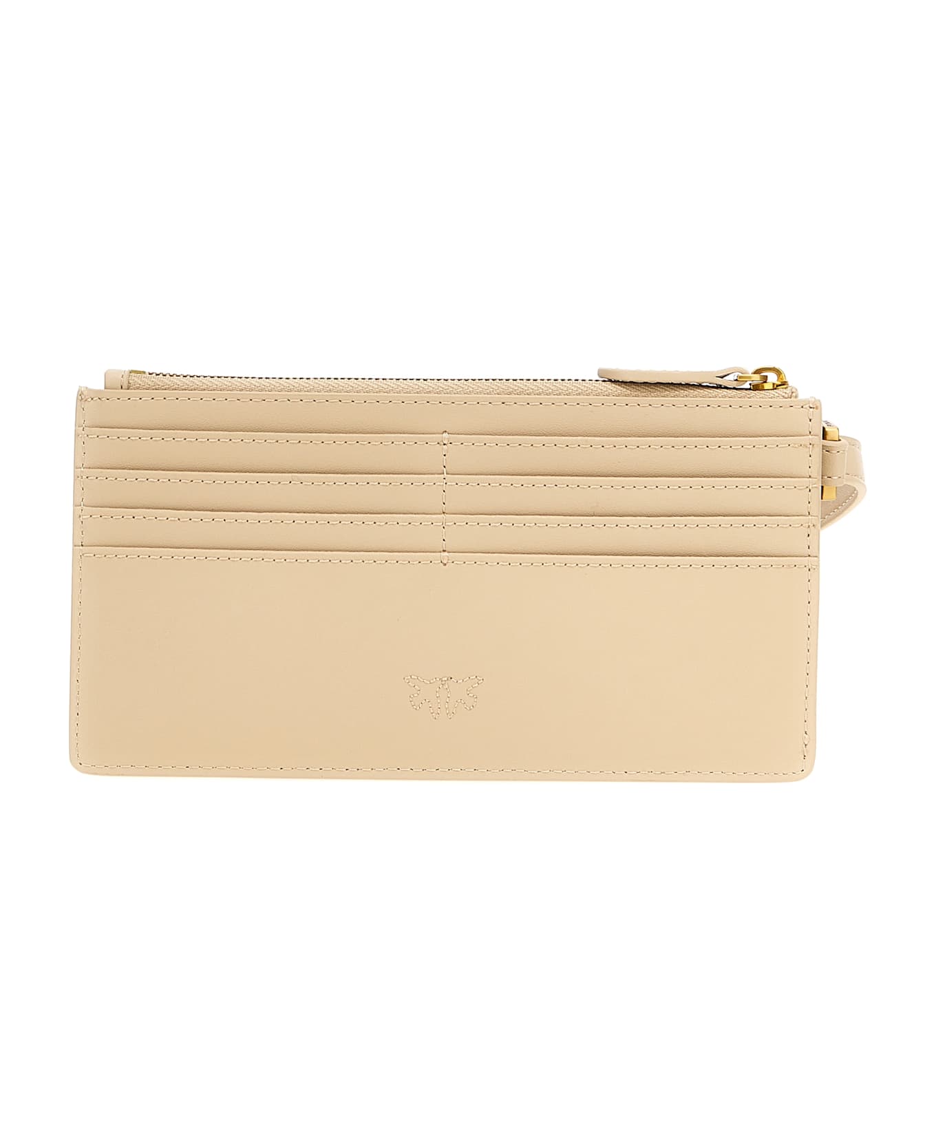 'Long' drummed leather card holder, front metal logo, zip closure, card holder, adjustable and removable leather wristlet strap. Composition: 100% calfskin leather (Bos Taurus)