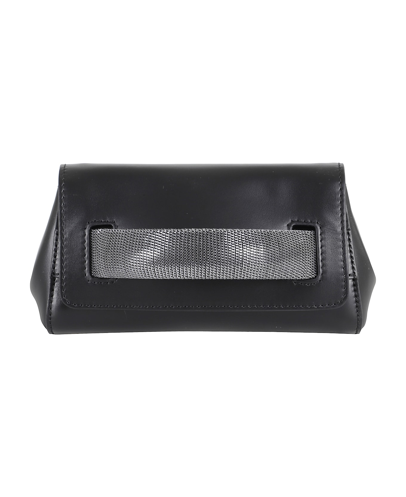 Gossip clutch - Orciani - Black color - Made of smooth leather - Single compartment - Front handle with chain band - Removable chain shoulder strap - Size: 20 x 10 x 7 cm