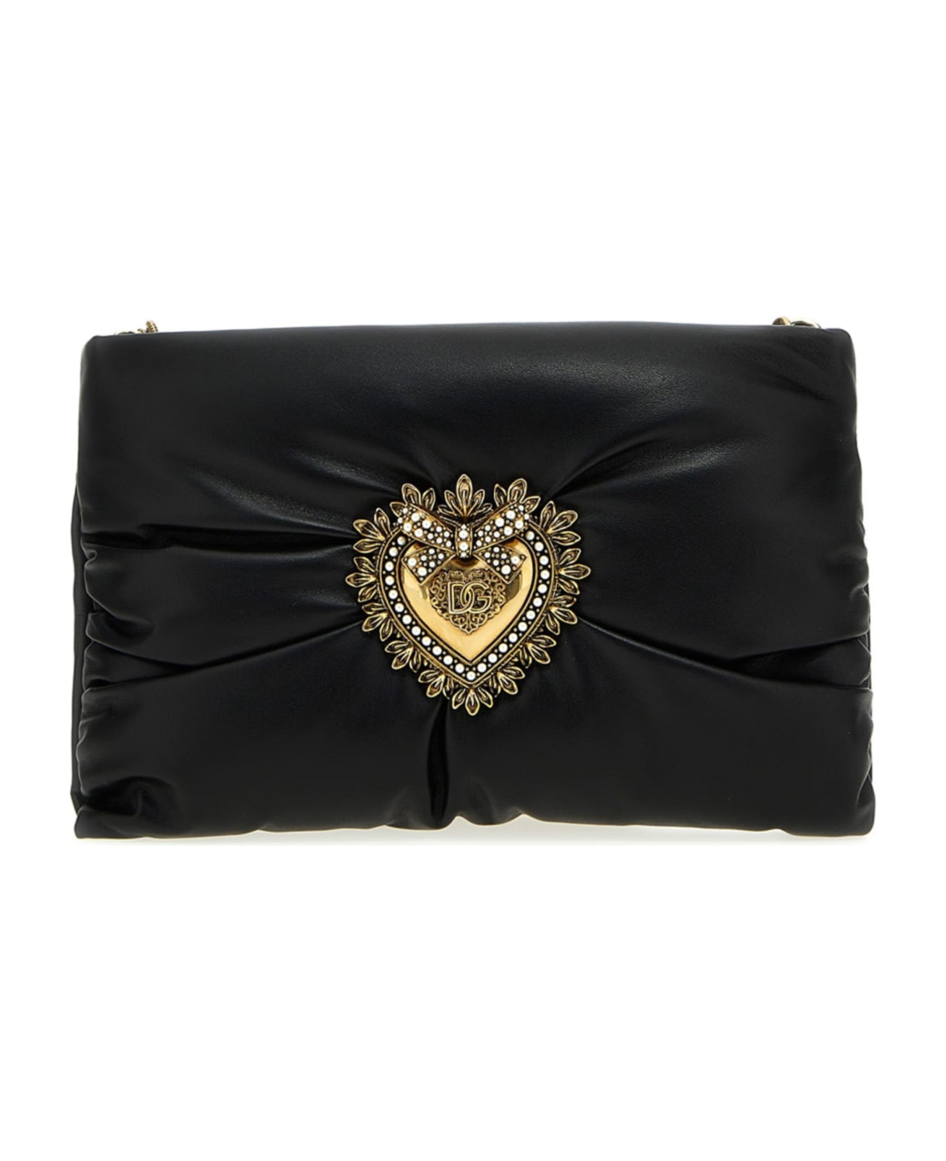 'Devotion' nappa shoulder bag, jewel heart application made of metal alloy with pearl abs intarsia, magnetic closure, sliding chain shoulder strap with leather details. Composition: 100% lamb leather (Ovis Aries)