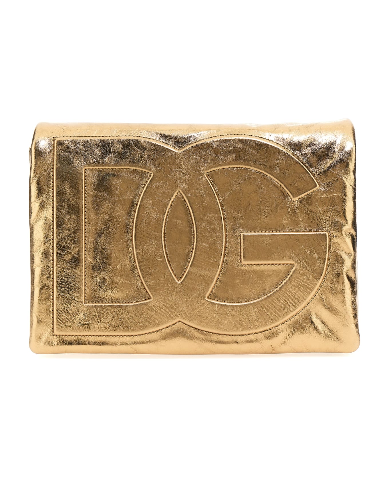 'DG Logo' clutch bag in lamé craclé leather with magnetic flap closure, adjustable and removable shoulder strap. Composition: 100% calfskin leather (Bos Taurus)