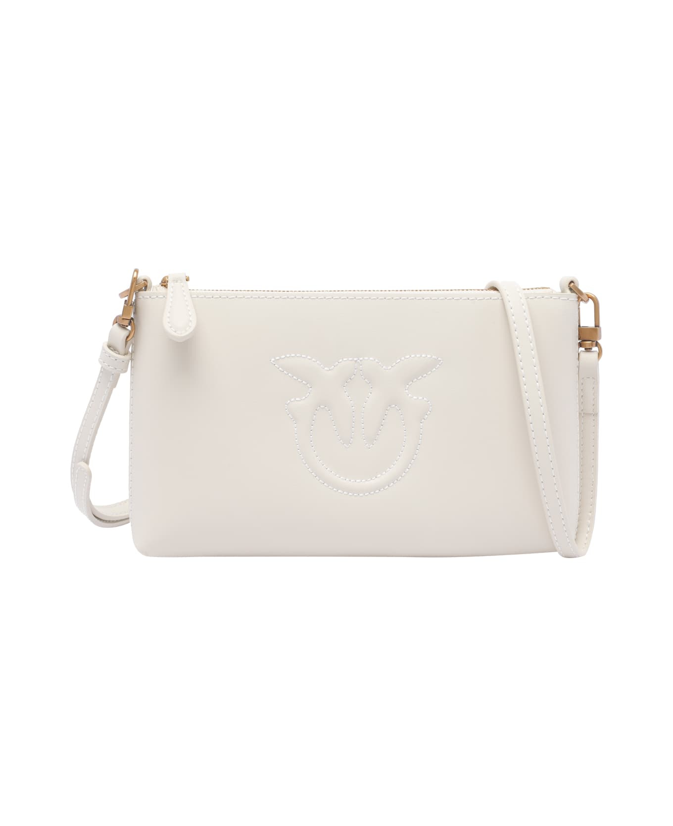 Pinko white Horizontal flat bag, zip closure, inner slot, zipped pocket, adaptable and removable strap, frontal embroidered logo Composition: 100% Calf Leather