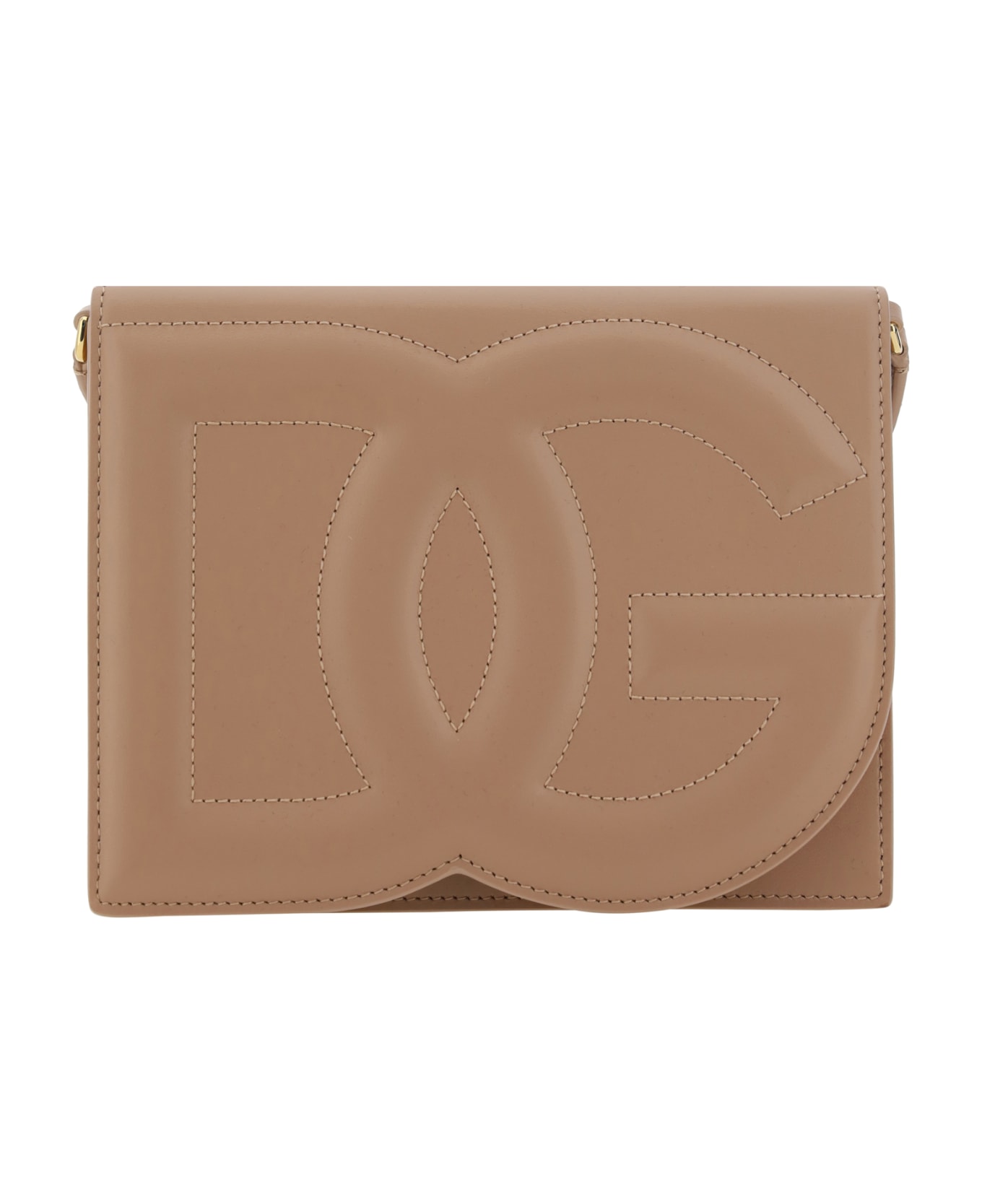 Calfskin shoulder bag by dolce&gabbana, maxi brand logo on front with tone-on-tone topstitching, front magnetic flap, flat leather shoulder strap, squared design, internal welt pocket. Composition: 100% % Calf Leather Bos Taurus