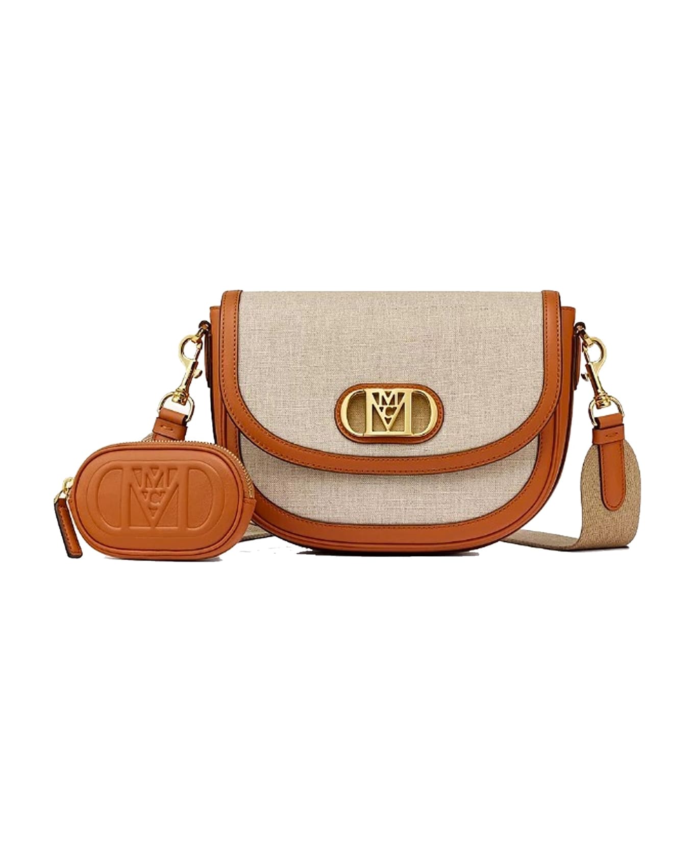 - Composition: 100% canvas - Leather details - Flap top magnetic snap closure - Detachable shoulder strap - Mini pouch detail - Gold tone logo detail - Length 18 cm / 7 in - Height 13 cm / 5,1 in - Width 5 cm / 2 in