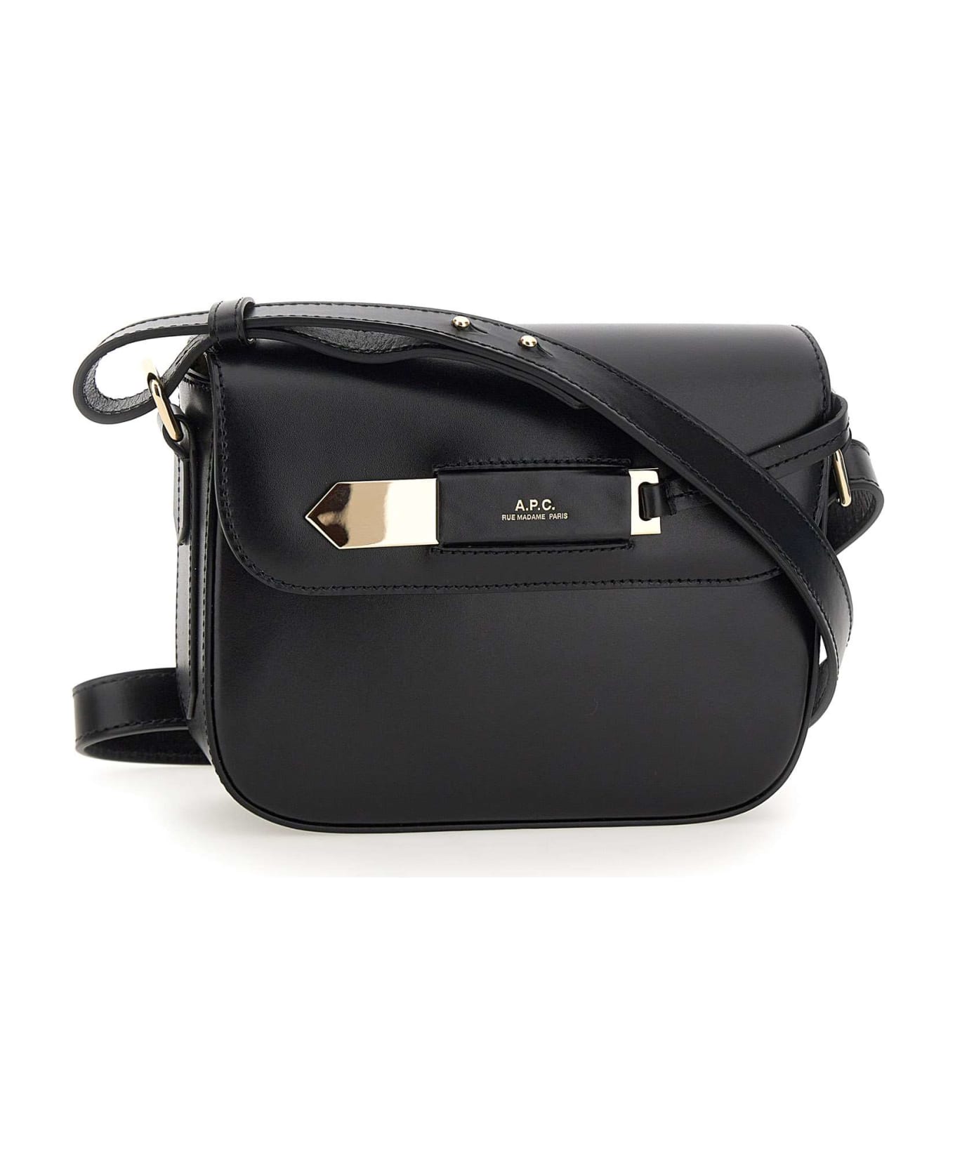 A. P. C. "Charlotte" shoulder bag smooth cowhide leather, flap fastening with logoed bar and magnet, brass metal finishes, lined inside in mud suede, adjustable shoulder strap, large internal compartment, internal pocket with zip. Dimensions: length 19cm, height 15cm, depth 6cm. Shoulder length 105cm. Fabric case included.