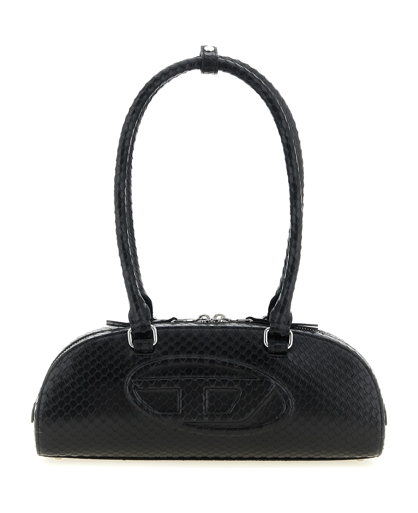 '1DR Dome' shoulder bag in Taipan snake-effect embossed leather, rectangular silhouette, Bowling model, high-frequency embossed 'Oval D' logo on the front, top zip closure, double fixed tubular handle, rigid base with metal feet. Composition: 100% leather