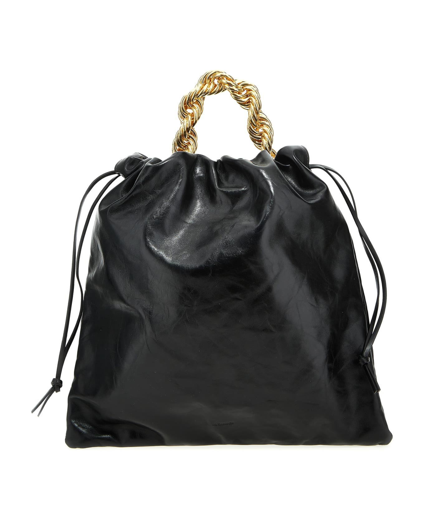 Drawstring Chain' shoulder bag in coated effect leather with drawstring closure, thin handle and maxi gold metal chain detail on the front. Composition: 100% cowhide