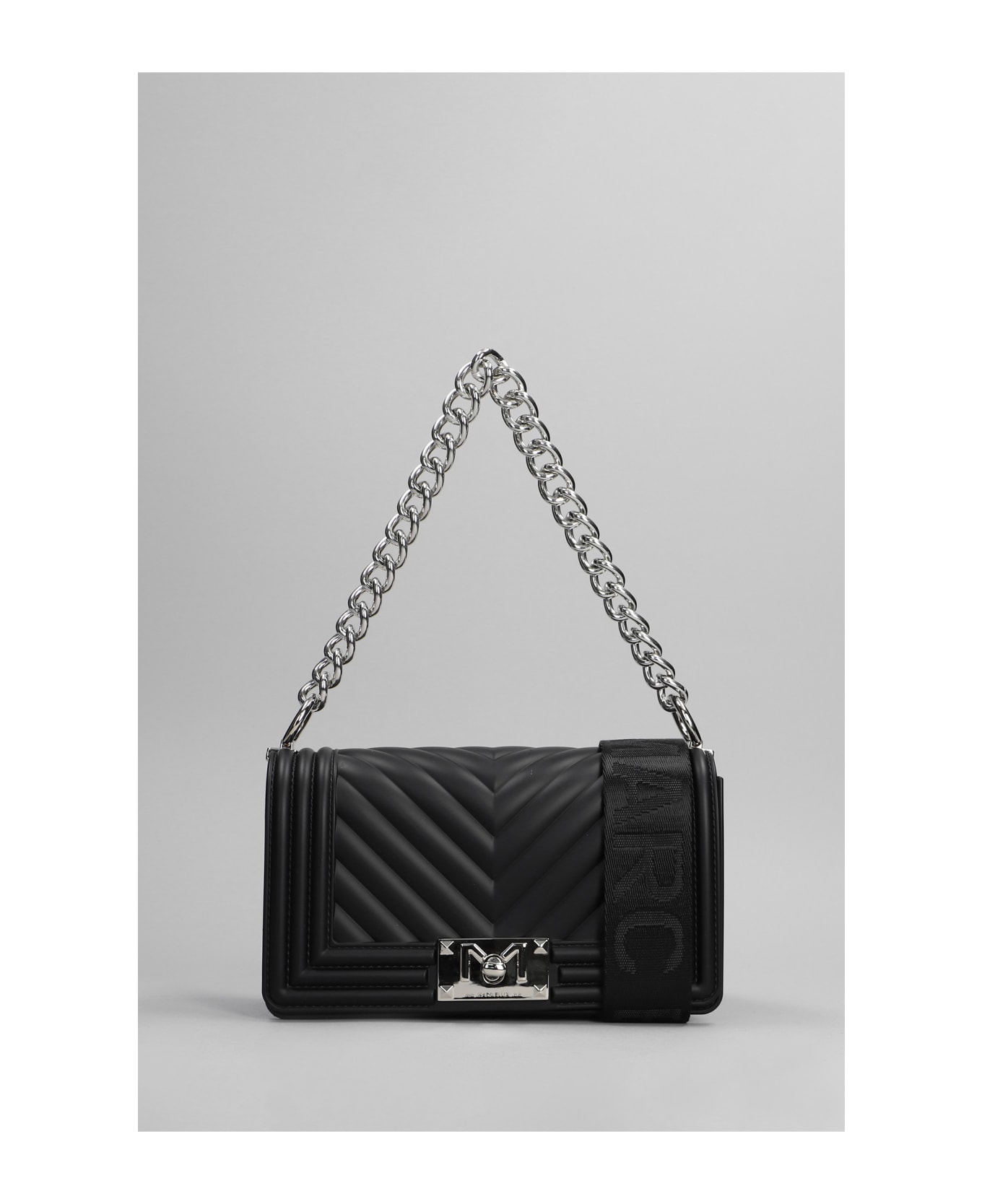 Flat S Shoulder bag in black PVC, double straps, quilted design, turn lock, 100% artificial leather, Made in Italy, Height 110 mm, Width 200 mm