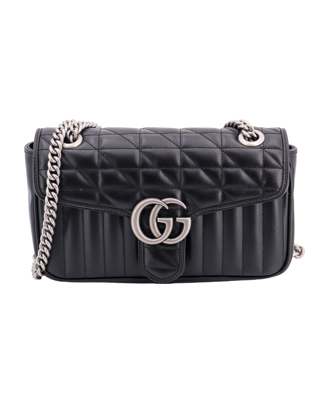 Matelassé leather shoulder bag with frontal GG logo