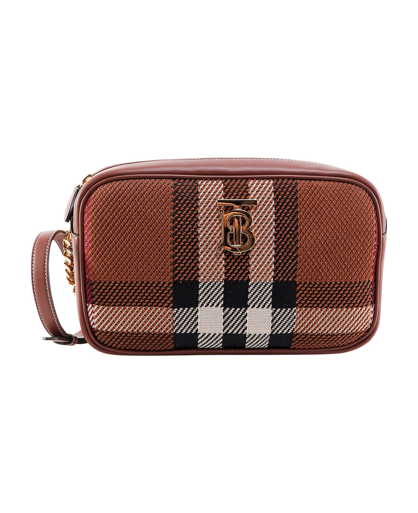 Lola knit shoulder bag with tartan motif - Closure With Zip - Leather Adjustable Shoulder Strap - Frontal Monogram And Internal Pocket - Made In Italy - 55% Cotton 45% Linen