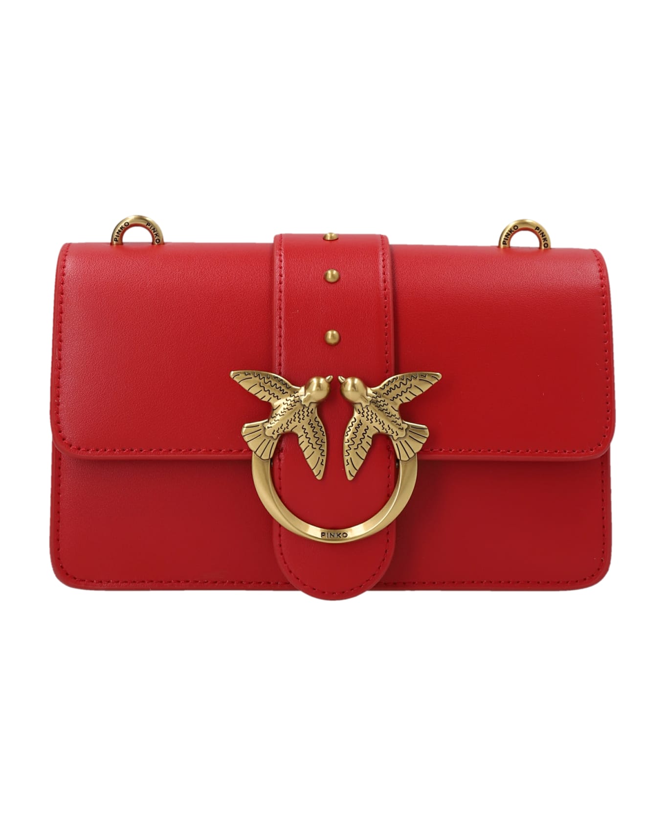 Love One Mini Classic' leather crossbody bag with flap closure with metal logo application, chain and leather shoulder strap.