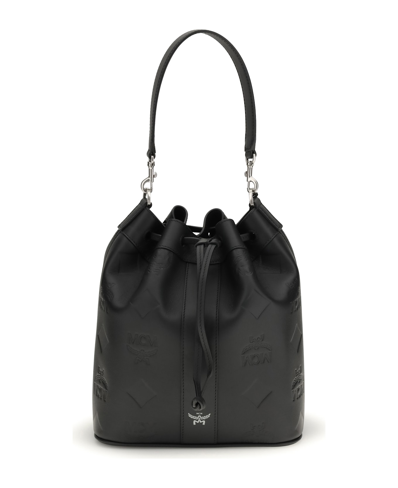 The medium dessau bucket bag by mcm impresses with a rounded, structured base that holds its shape no matter the occasion. the surface is decorated with the embossed mcm logo and distinctive graphic details, while the exposed stitching, profiled edges and drawstring closure combine functionality and style. a discreet metallic logo stands out on the front for a sleek, contemporary touch.