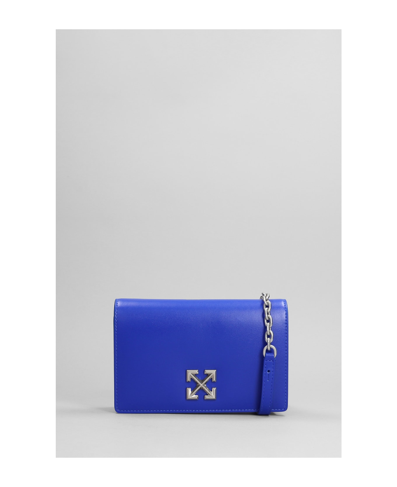 Shoulder bag in blue leather, Height 105 mm, Width 190 mm, Height 105 mm, chain and leather carry, magnetic closure, silver hardware, logo buckle, 100% leather, Made in Italy
