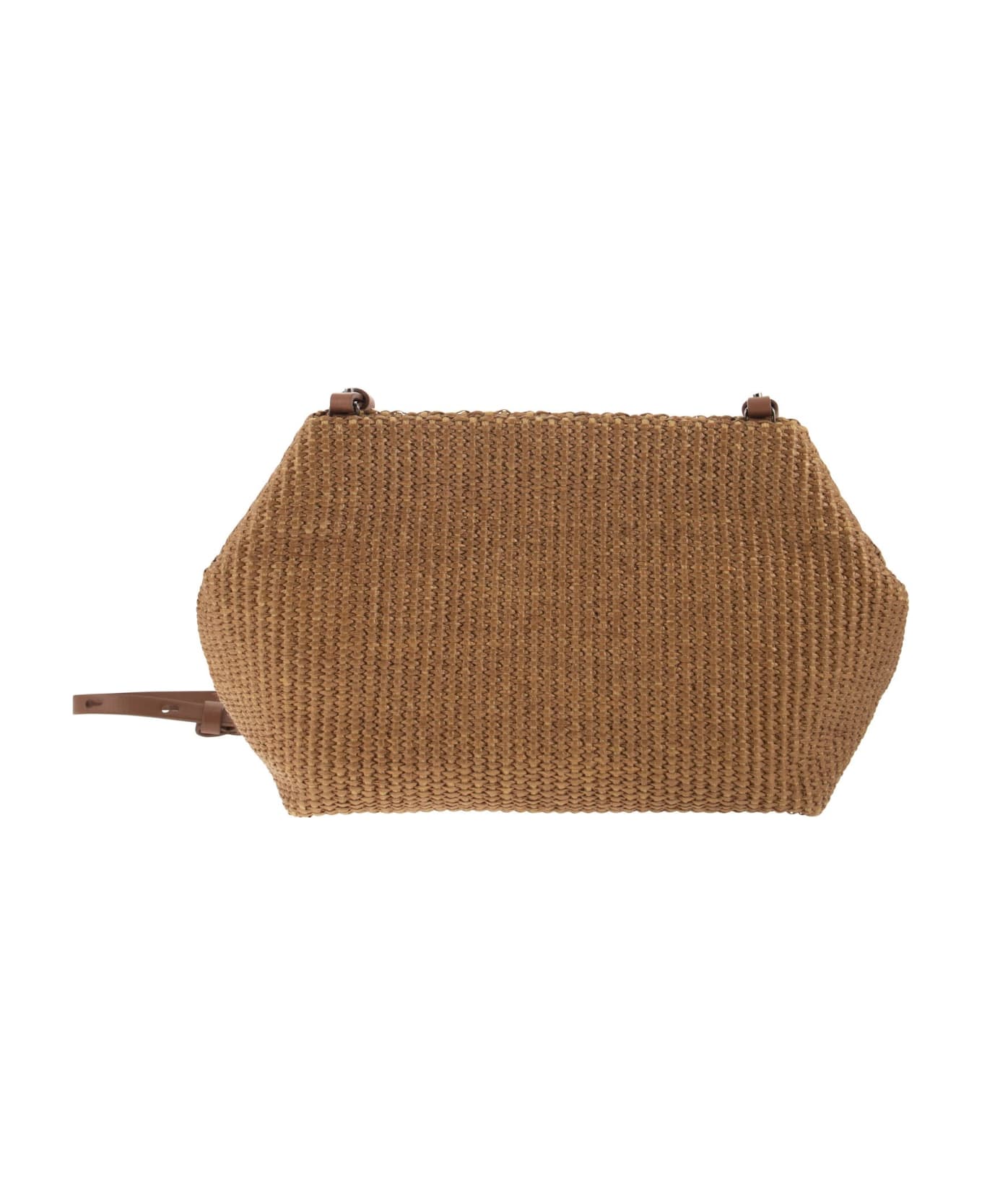 The summery flavour of techno raffia defines the style of the Shoulder bag. The modern silhouette is characterised by geometric shapes that reveal between the sophisticated folds of the edges a precious embroidery in rows of jewels, an iconic element of the Brunello Cucinelli collections. Finally, the removable shoulder strap and internal zipped pocket complete the accessory with functional details. - Closure with magnets - Adjustable and removable shoulder strap - Leather lining - Inside pocket with zip closure - Nickel-free jewel decoration DESIGNER ID: MB96D2432 C8274