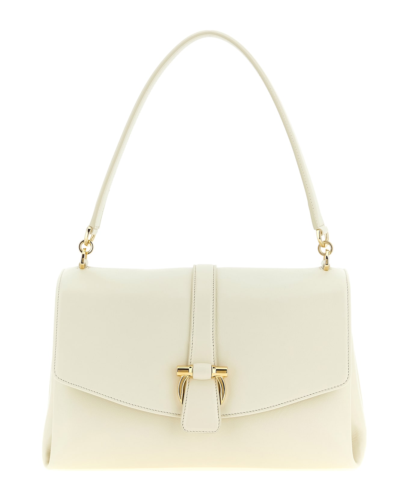 'TH (M)' shoulder bag in calf leather, magnetic flap closure with front 'Gancini' detail, side gussets, fixed handle, adjustable and removable shoulder strap. Composition: 100% calfskin leather (Bos Taurus)