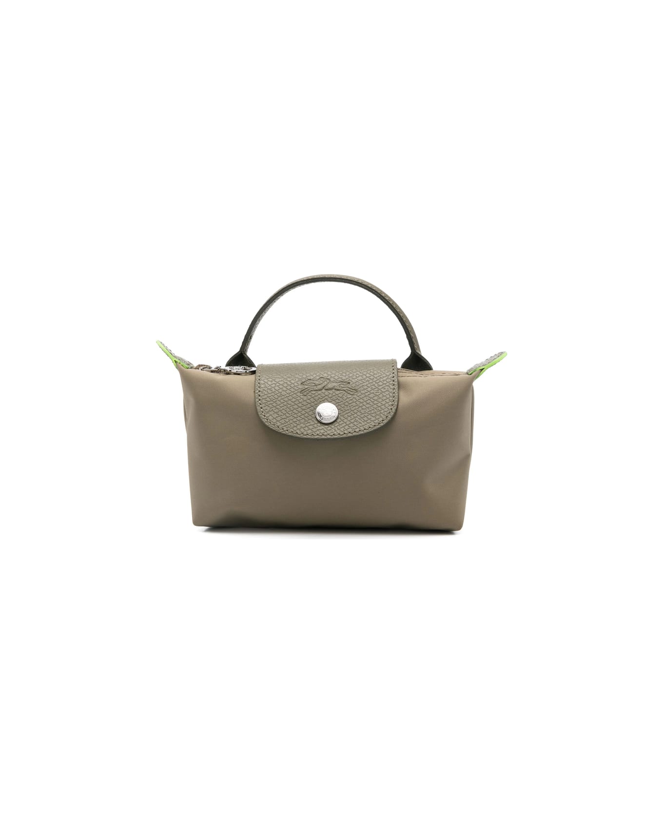 artichoke green canvas leather trim top zip fastening single rolled top handle foldover top with press-stud fastening embossed logo to the front embossed logo to the rear main compartment