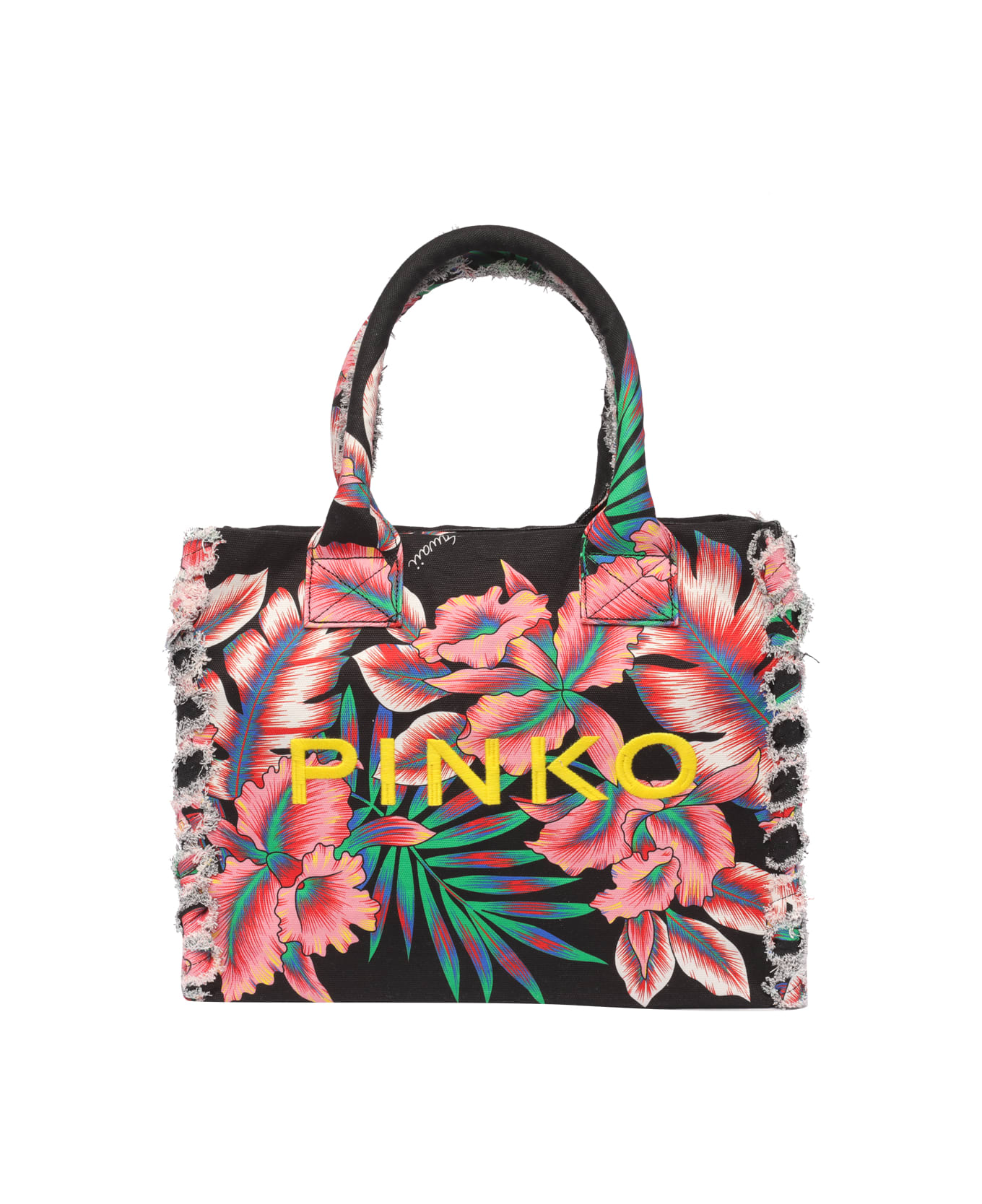 Pinko multicolor shopping bag, zip closure, inner zip pocket and one open pocket, 2 handles, frontal logo Composition: 100% Cotton