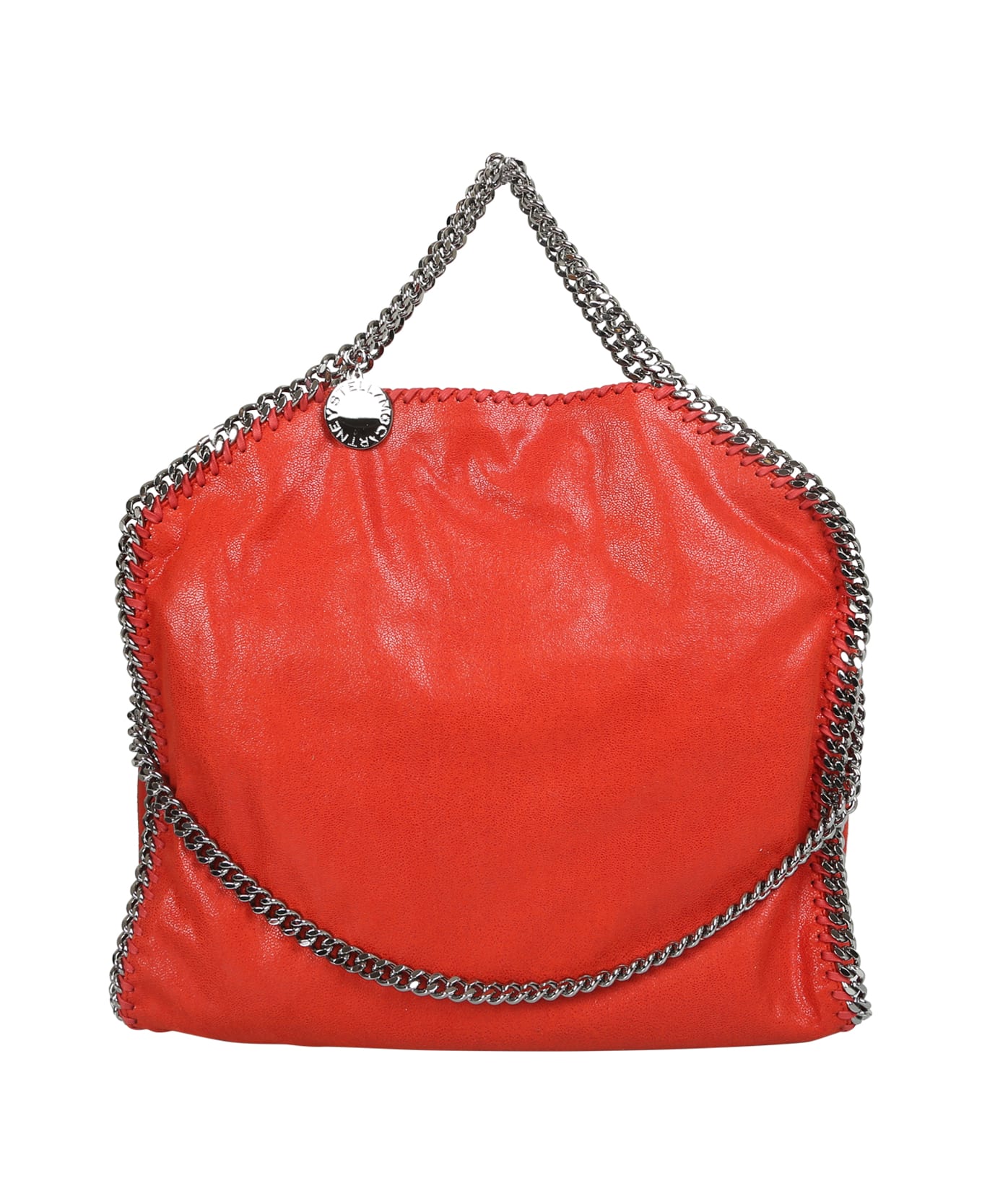 Two chain-link top handles. Chain-link shoulder strap. Magnetic fastening. Internal zip pocket. Main compartment. Chain-link trim. Logo charm. Silver-tone hardware. POSITIVELY CONSCIOUS. Made of cruelty-free leather. Color: rust orange.