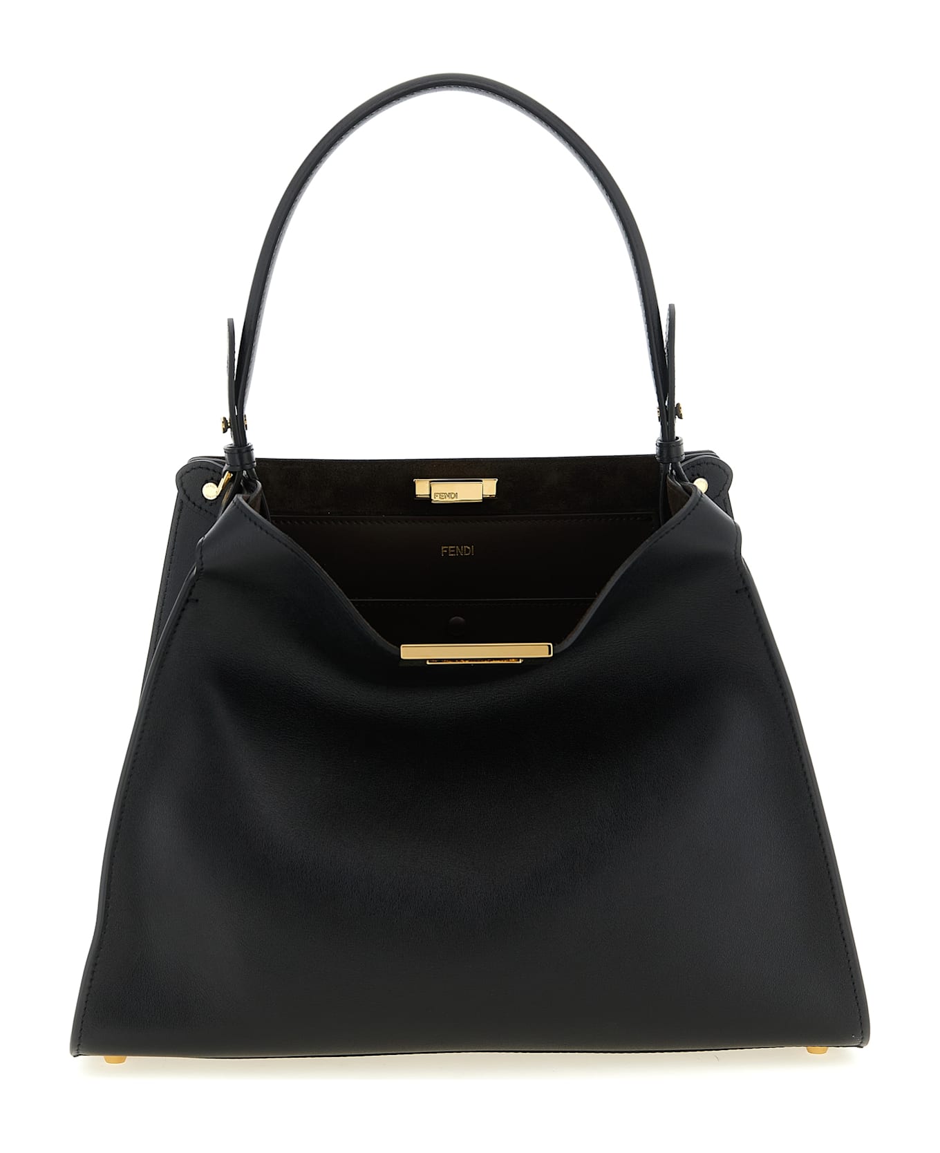 Medium 'Fendi Way' semi-gloss calf leather handbag with contrast suede lining, iconic metal swivel closure, adjustable handle, rigid base with metal feet. Composition: 100% calfskin leather (Bos Taurus)