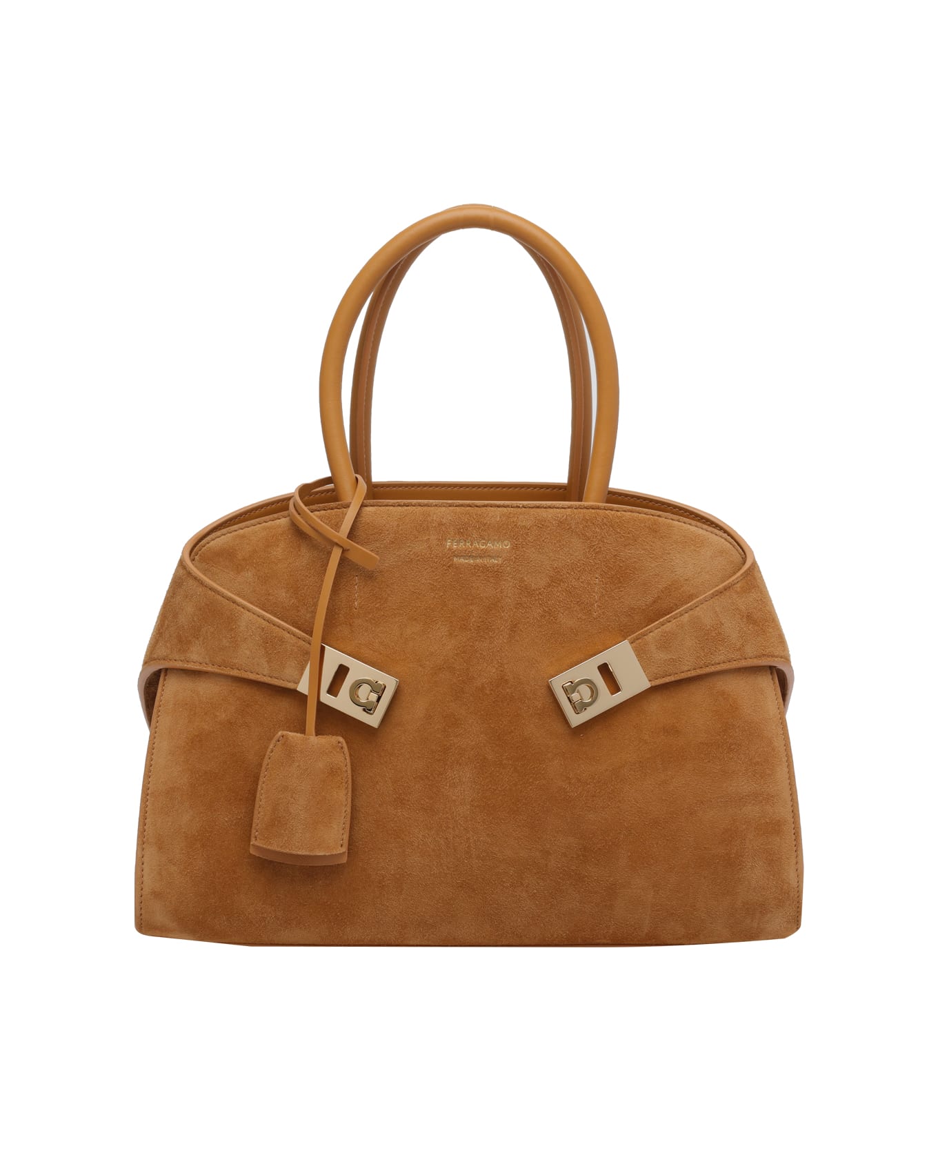 Ferragamo natural Hug handbag, frog closure, inner zip pocket, 2 handles, adjustable and removable shoulder strap, logo Composition: 100% Calf Leather