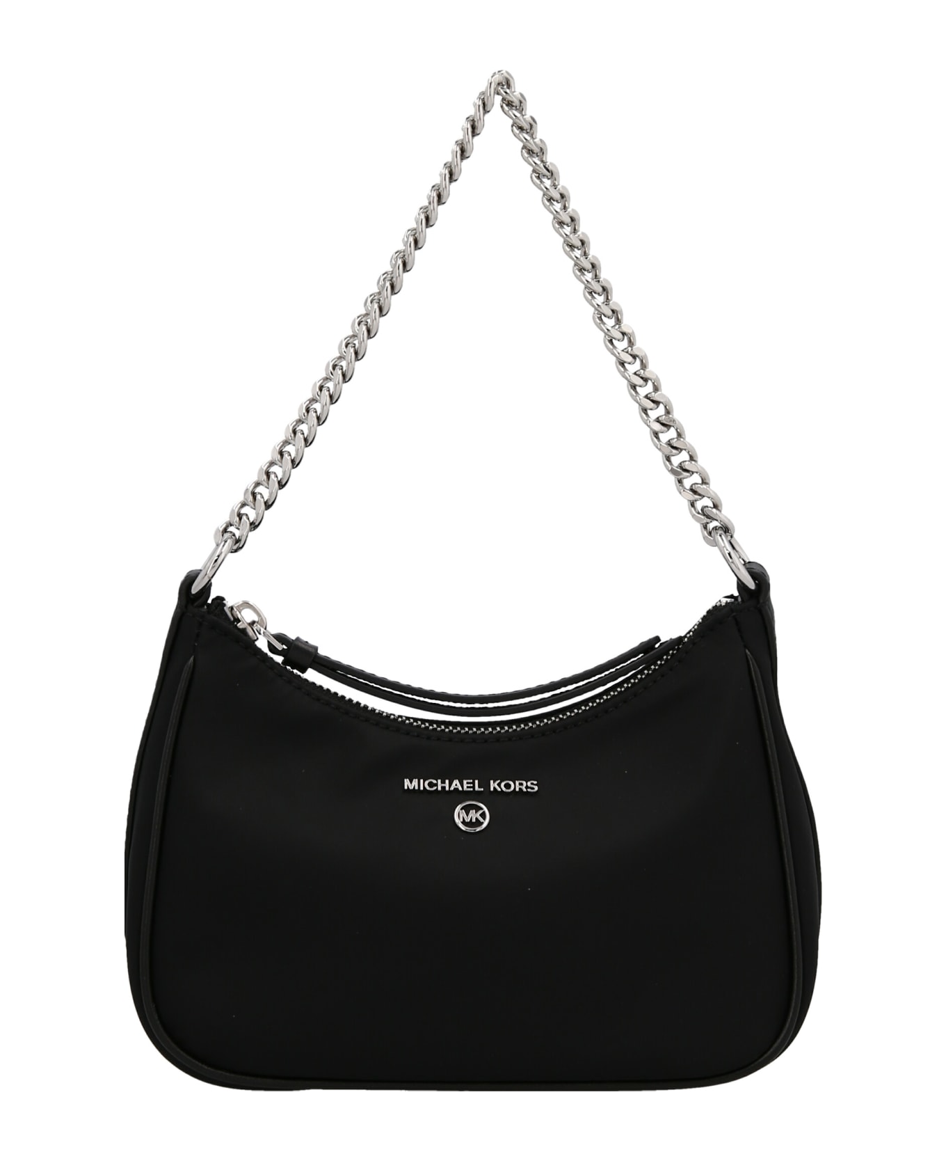 Jet Set' nylon handbag with leather details, front logo, zip closure, and a chain handle. Composition: Composition: 100 Af