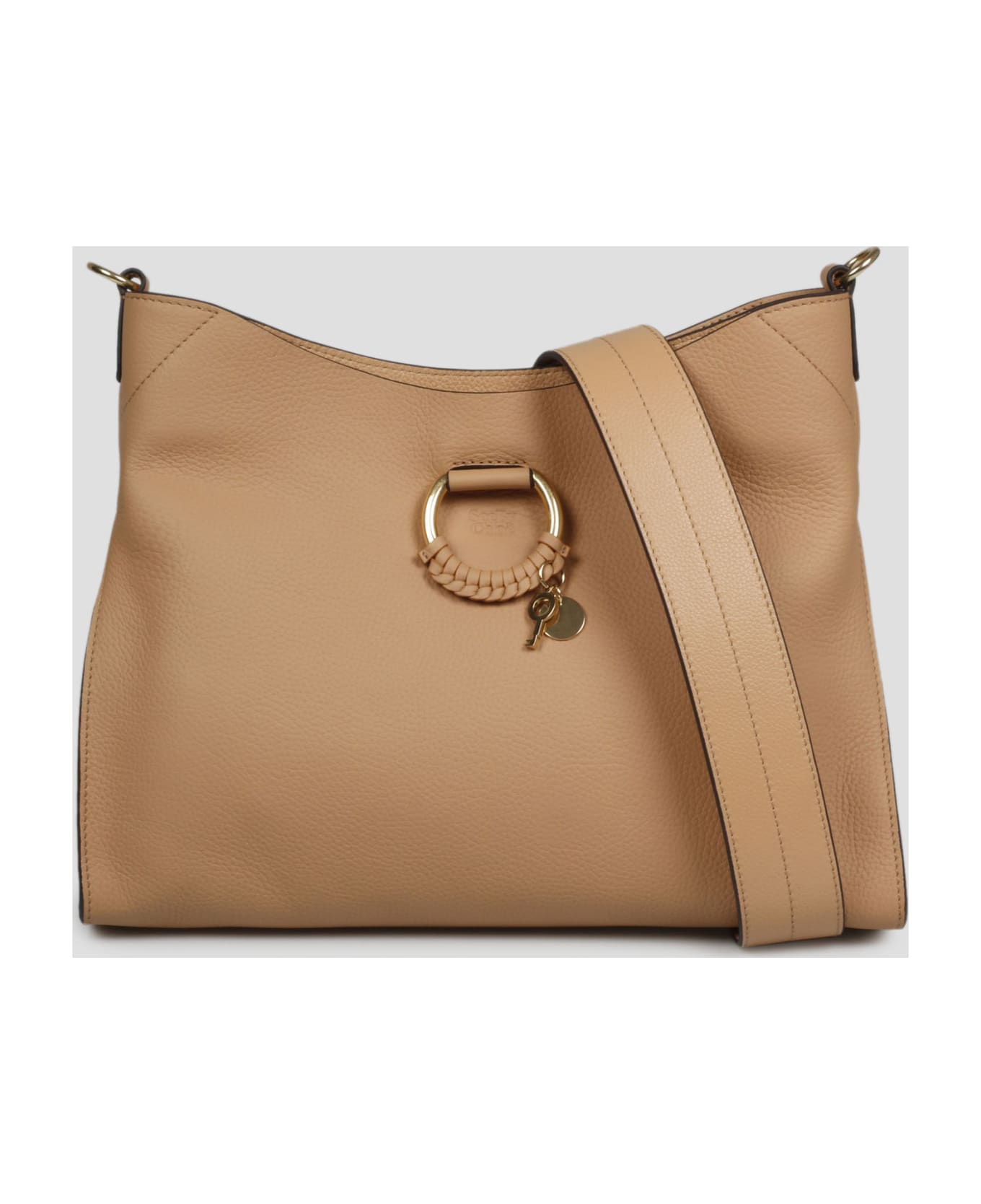 Joan small bag by See by Chloé, in grained leather with a top handle and a soft silhouette. - SS23 - IIconic braided ring - See By Chloé emblem - Removable shoulder strap (50cm) - Magnetic closure - Internal flat pocket - w:34cm, h:29cm, d:8cm - Made in India - Cowhide