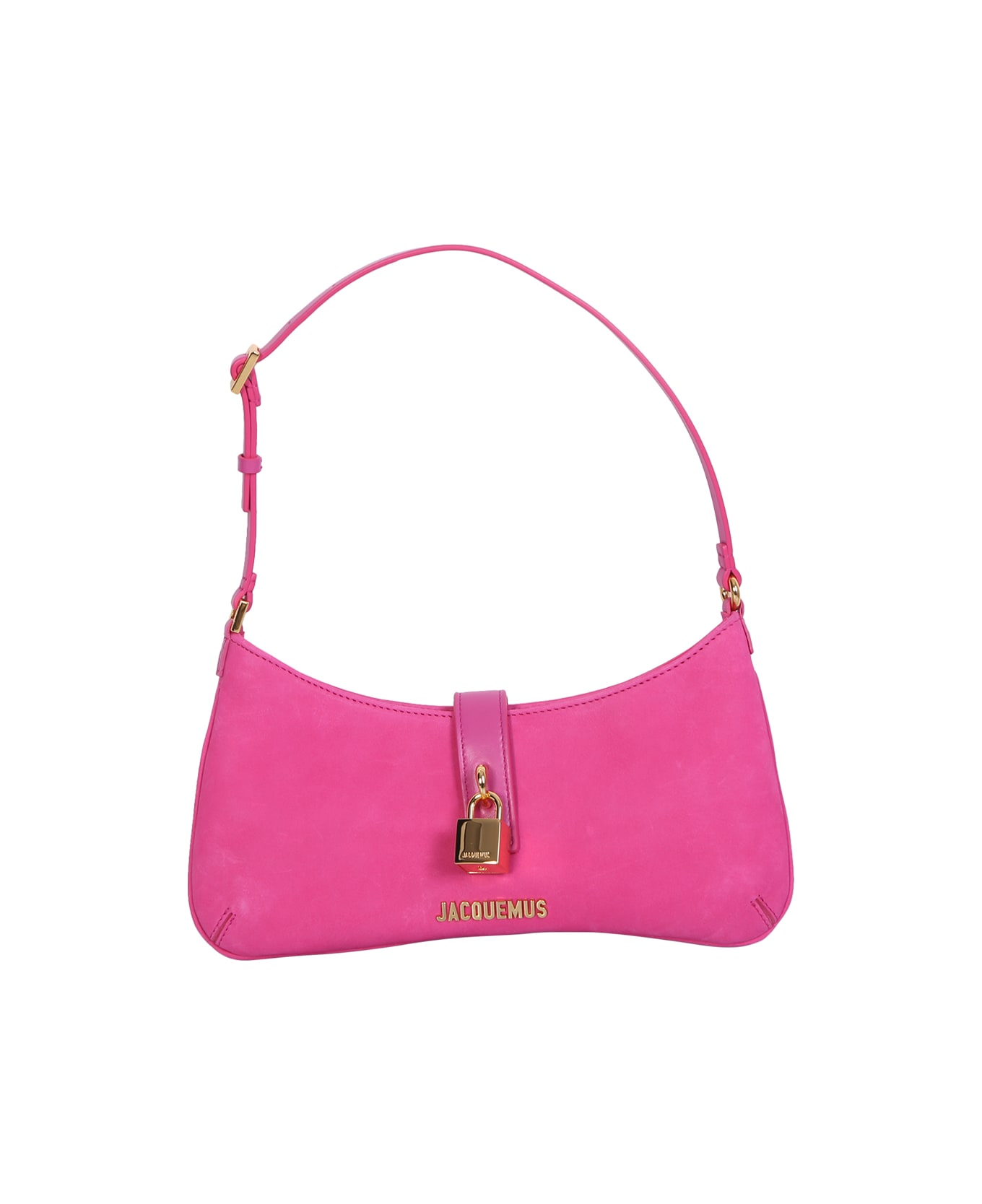Logo plaque. Top zip fastening.Flap with engraved padlock. Adjustable buckled strap. Main compartment. Interior patch pocket. Color: fuxia