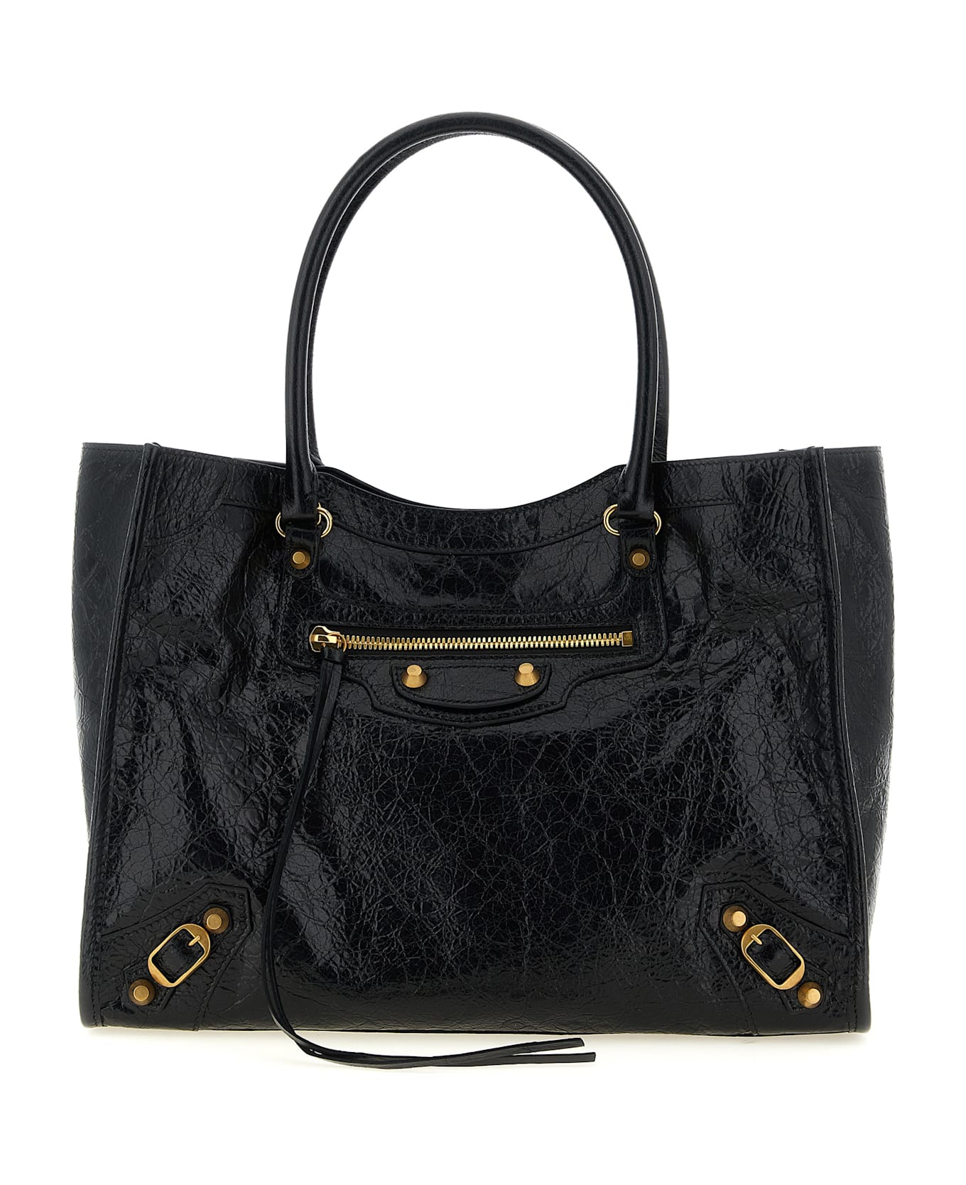 Arena Storico 'Le City S' lambskin shopping bag with antiqued gold studs, double fixed handle, internal magnetic closure, front zip pocket, cotton canvas lining, adjustable and removable shoulder strap. Composition: 100% lamb leather (Ovis aries)