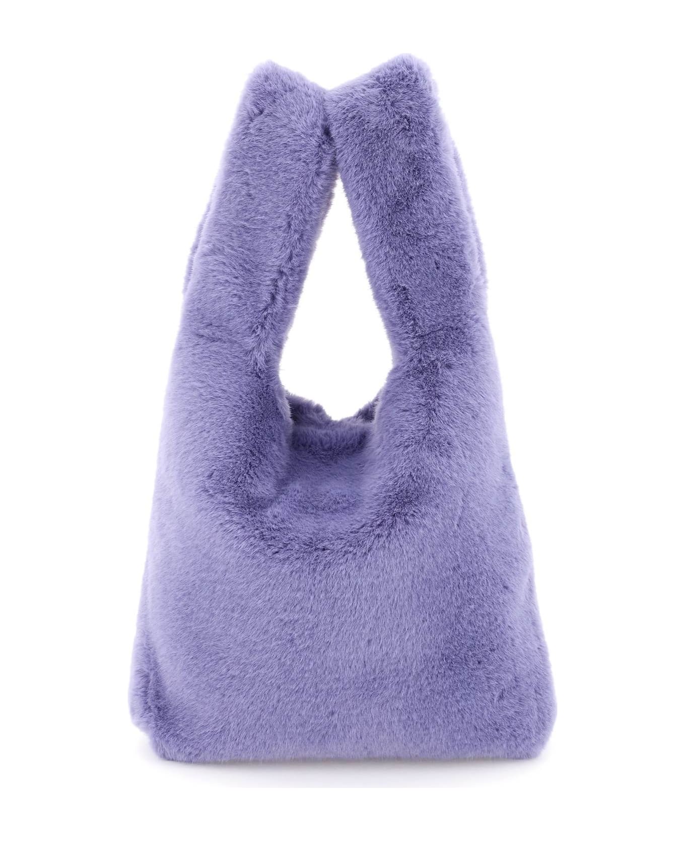 Market handbag by Stand Studio crafted in faux fur with press button closure, lined interior with one flat pocket and contrasting patch logo.