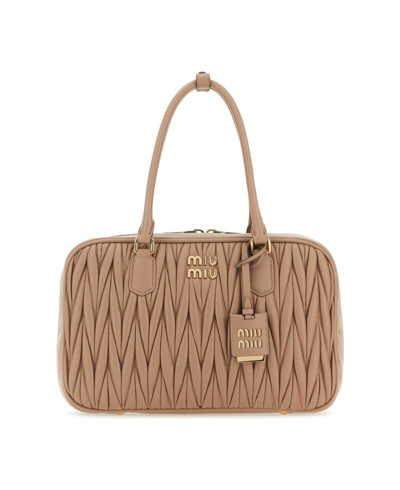Matelass? Logo Plaque Zipped Tote Bag from Miu Miu