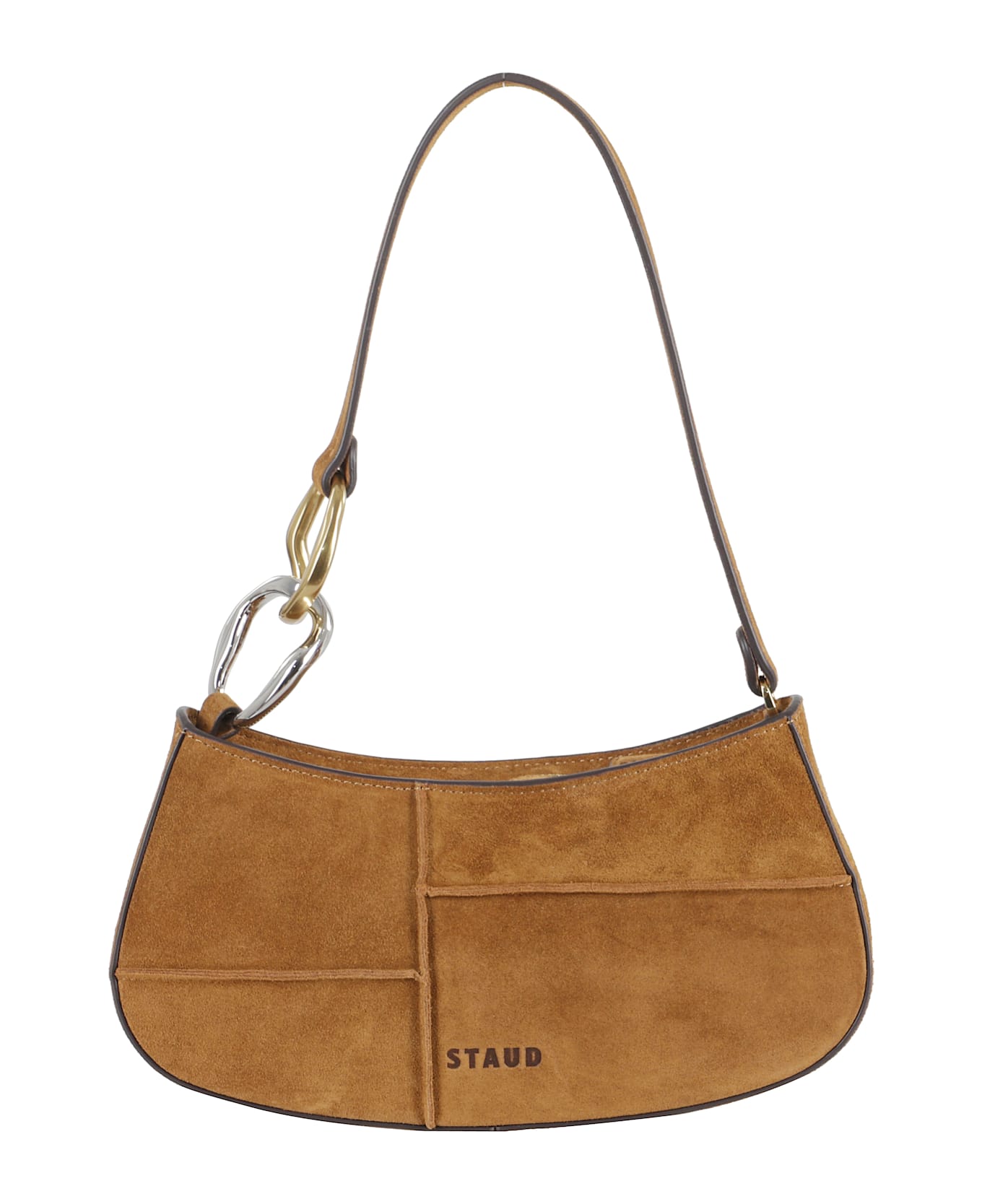 Ollie bag -Staud -Color tan -Single interior compartment -Handles -Zip closure -Suede -Dimensions: Width 24cm x Height 11cm x Depth 6cm