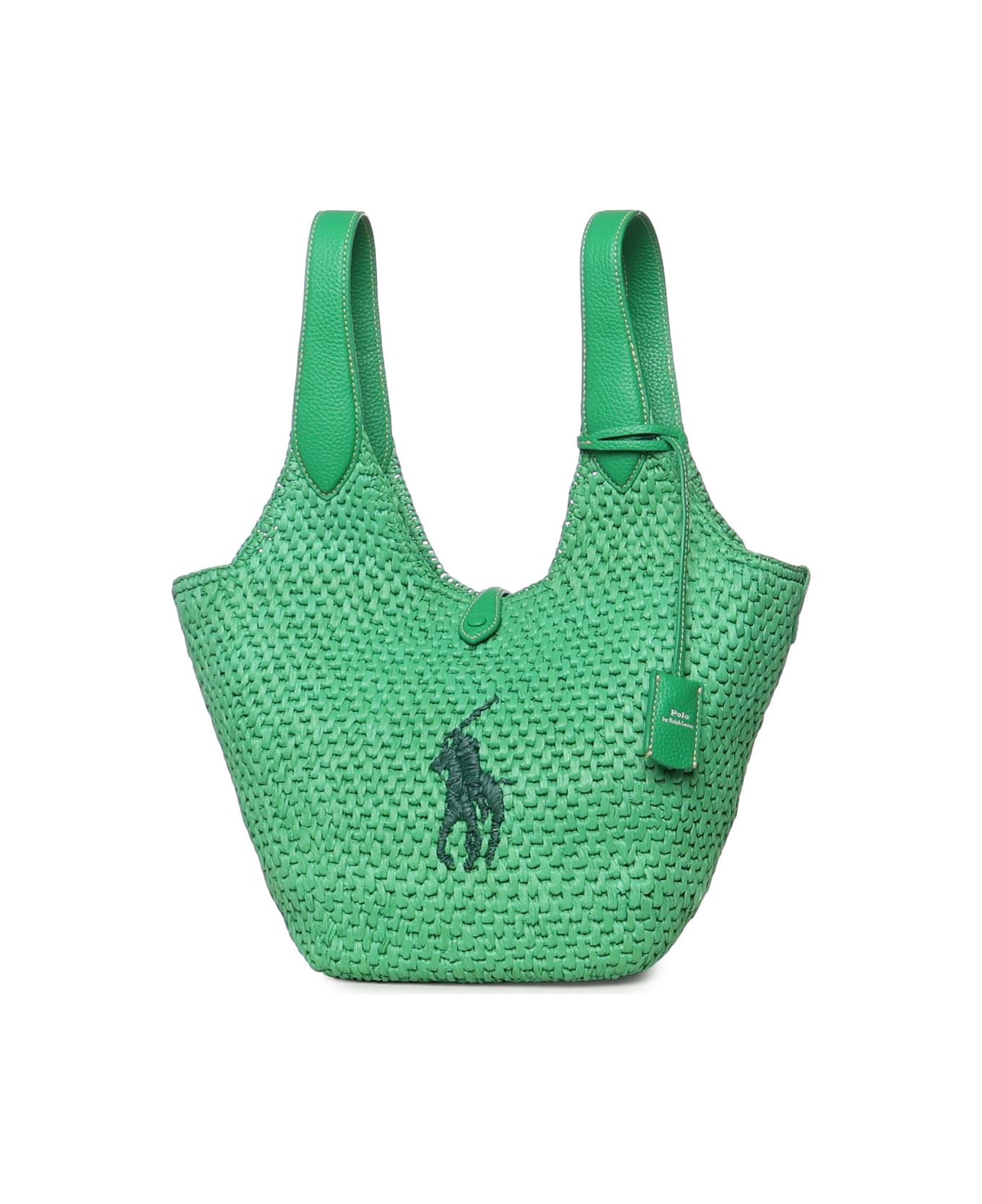 - Made of viscose and raffia - Snap closure - Top handles - Logo embroidery - Dimensions: 40 x 28 x 18 cm - Color: Green