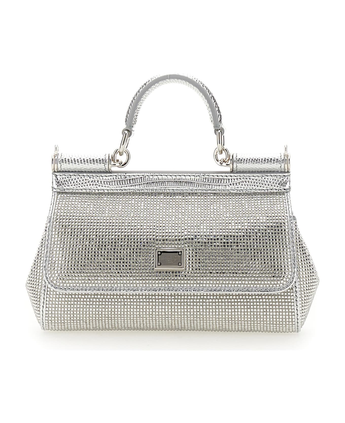 - Top Handle- Adjustable And Removable Shoulder Strap- Front Flap With Double Magnet Closure- Front Logo Plaque- Rhinestone Decoration- Lined Interior With Pocket- Dimensions: H 13 Cm X W 19 Cm X D 6 Cm- 25% Silk, 55% Viscose, 20% Leather- Made In Italy