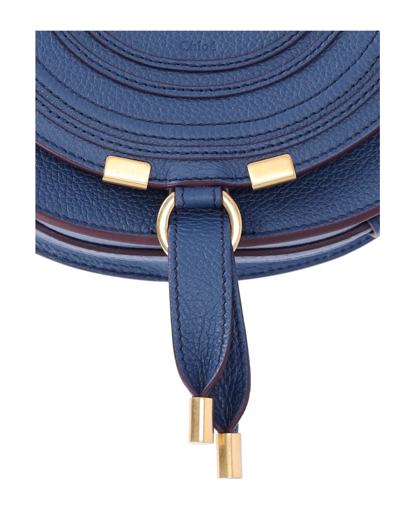 Chlo? Small Shoulder Bag 'Marcie', blue grained leather, adjustable shoulder strap, front contrast stitching, embossed logo, gold charm and front tassel, one front flat pocket, one main interior compartment, one interior card slot.