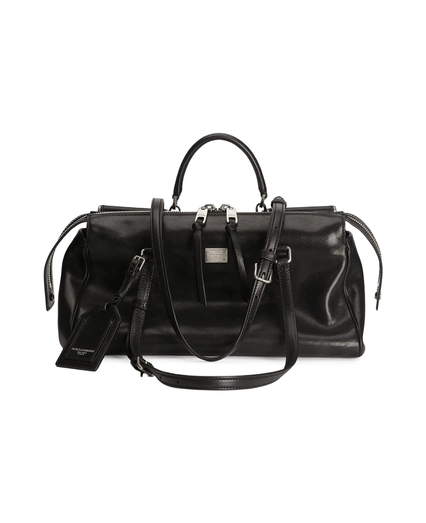 - Made of calfskin - Zip closure - Top leather handles - Interior zip pocket, flat pocket - Logo details - Dimensions: 30 x 20 x 13 cm - Made in Italy - Color: Black