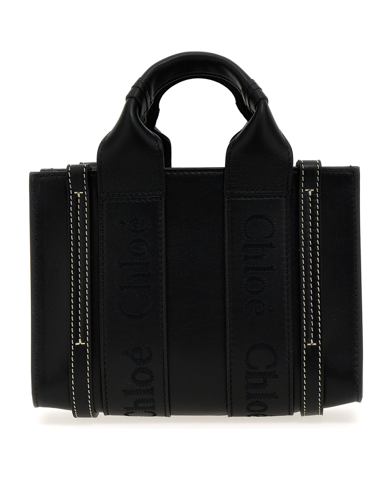 'Woody Mini' smooth calf leather handbag embellished with logo embroidered bands, shoulder strap and double top handle, main compartment, linen lining. : this product was made in partnership with tanners from Leather Working Group (LWG) that use less water and energy and have a chemical, solid waste and slurry management policy.