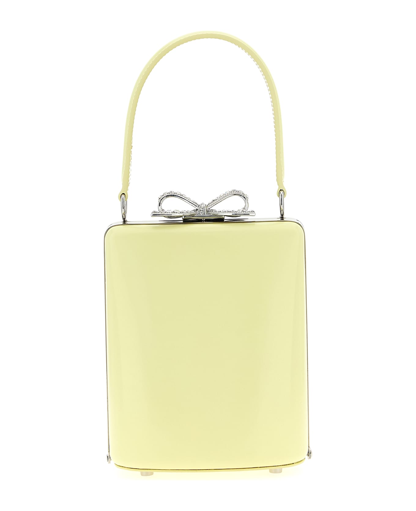 'Yellow leather bag' leather handbag with metal details, fixed handle, snap closure with metal bow detail with rhinestones, front logo print. Composition: 100% leather