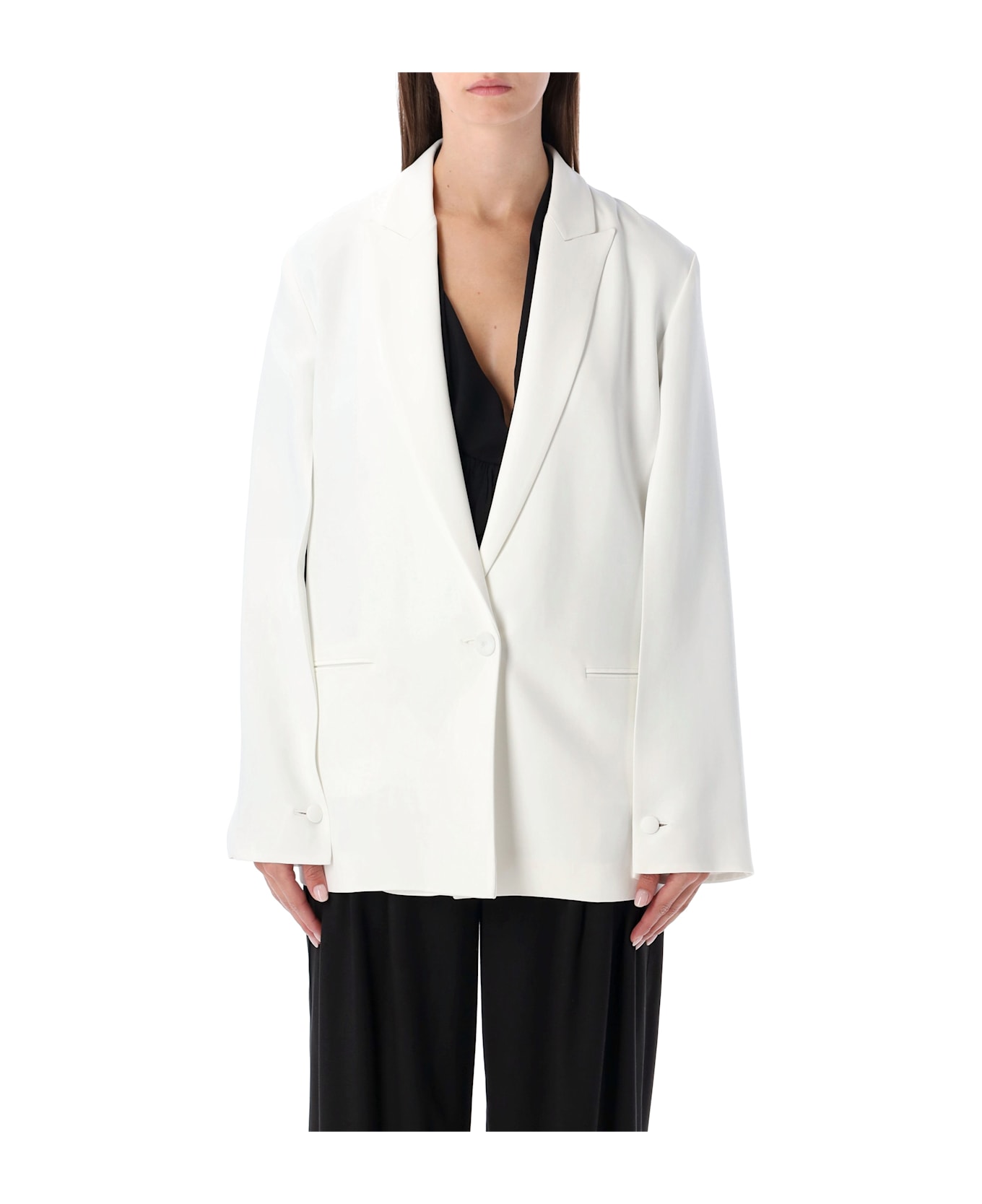 A Tailored Blazer By Alberta Ferretti, Blending Comfort And Sophistication In A Relaxed, Modern Design. Crafted From White Stretch Cady, It Features A Deep V-neckline With Peak Lapels And A Single-breasted Closure. Side Pockets Add Practicality To This Versatile Piece, Perfect To Pair With Tailored Trousers Or Dresses For An Elegant Contemporary Look. White Stretch Cady Relaxed Fit With Lightly Shaped Silhouette Deep V-neckline With Peak Apels Single-breasted Closure With One Button Front Welt Pockets Open Sleeves With Buttoned Cuffs Alessandra Is 1,75 M And Wears Size 40