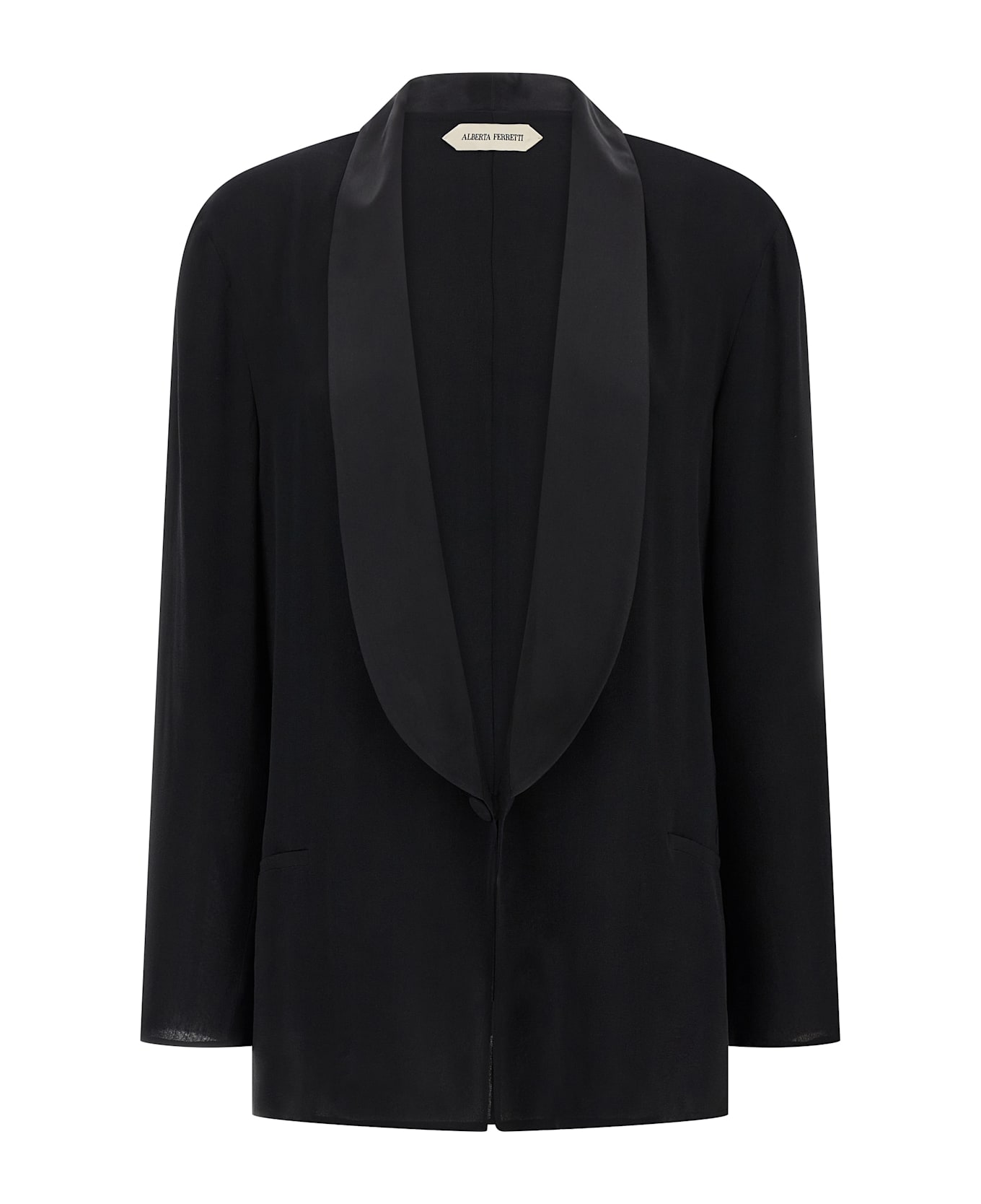 Silk georgette blazer with button closure, deep neckline with shiny satin lapels, long sleeves. Composition: 100% silk