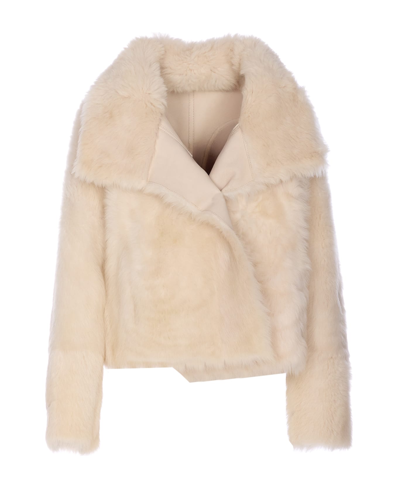 Yves Salomon beige and white veste jacket, lateral pockets, open silhouette Composition: 100% Lamb Leather