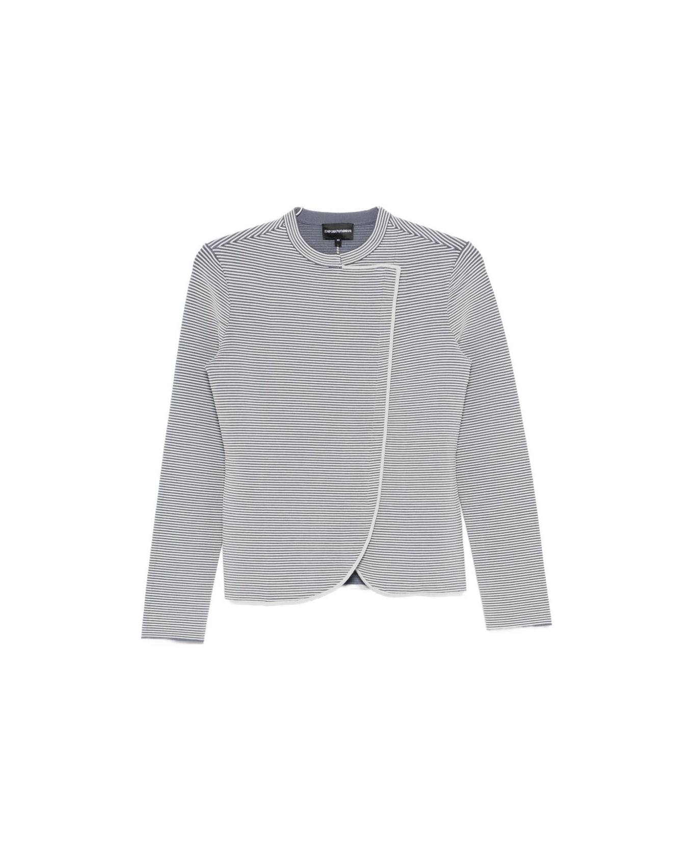 blue and grey striped overlapping panel round neck long sleeves Composition: 22% Polyamide, 5% Polyester, 70% Viscose, 3% Elastane