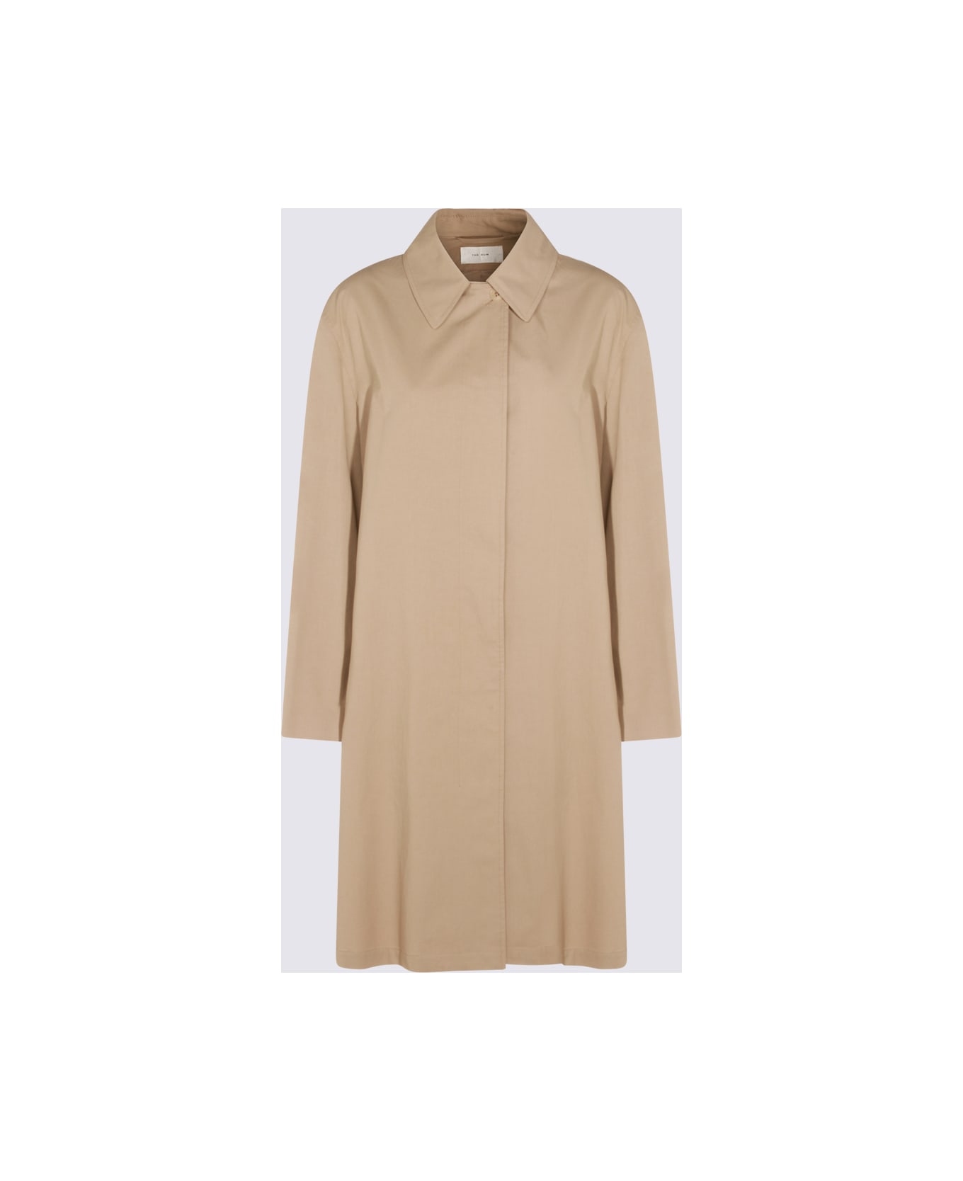 Beige wool Dayton trench coat from The Row featuring lapel collar, long sleeves, frontal closure and midi lenght. Composition: _, 100% Co