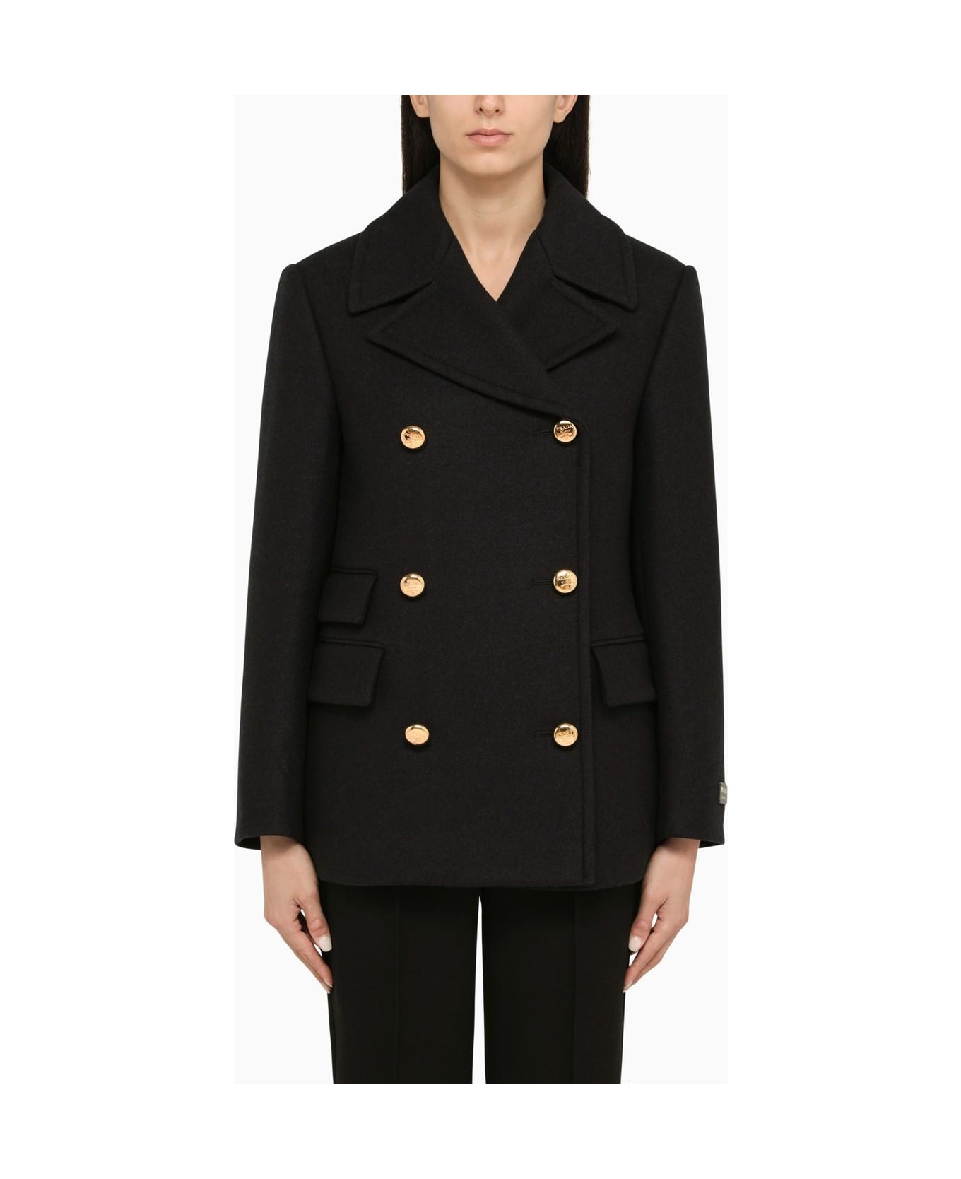 Blue virgin wool caban coat from Prada featuring three front pockets and double-breasted buttoning. Composition: Fabric I: 100% Virgin wool / Lining: 100% Viscose / Padding: 100% Recycled polyester / Calf leather details Composition: 100% Virgin Wool