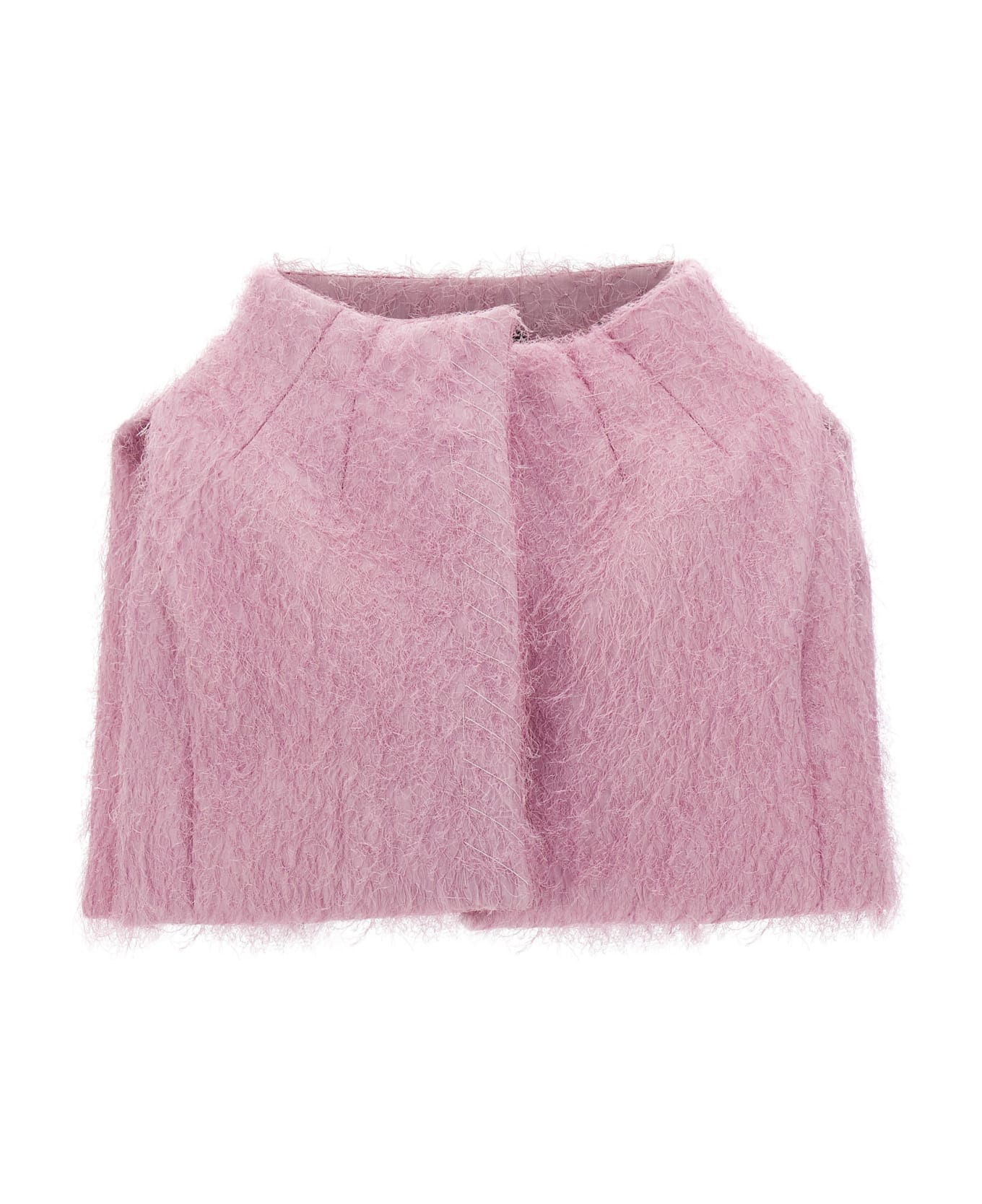 Cropped cape in bonded fabric with button closure. Composition: 100% viscose