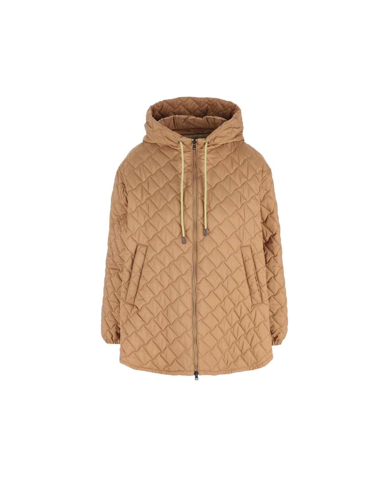 brown quilted hood zip fastening drawstring slip pockets