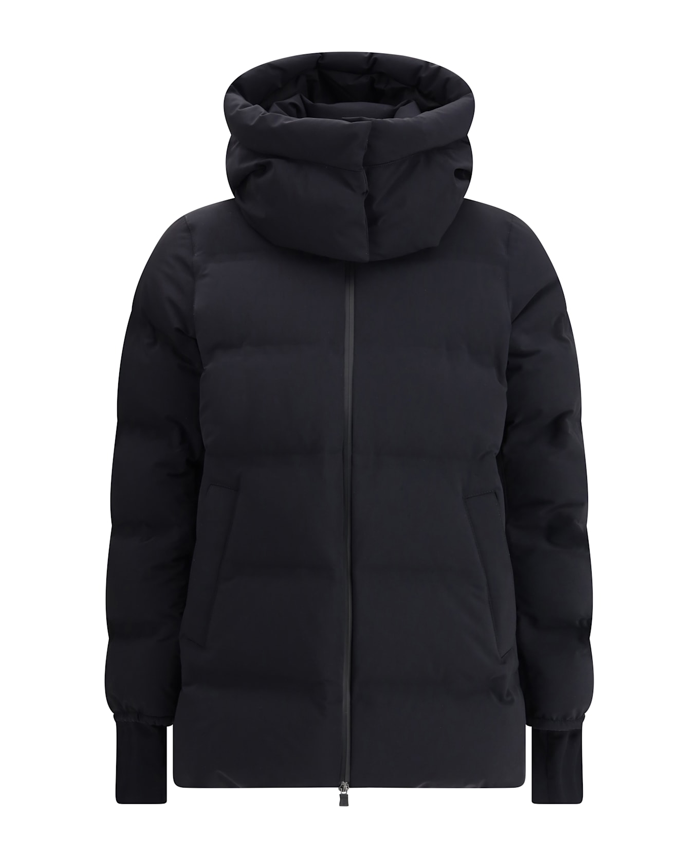 The new impact down jacket by herno perfectly blends elegance and functionality. crafted from soft, high-comfort new impact fabric paired with a stretch membrane, it offers high performance while maintaining a lightweight feel. the slightly flared silhouette and removable hood combine with a raised collar and stretch knit cuffs for a refined sporty-chic effect. featuring a heat-sealed zip closure and a waterproof, windproof, and breathable texture, it is designed to offer warmth and protection with unmistakable herno sophistication.
