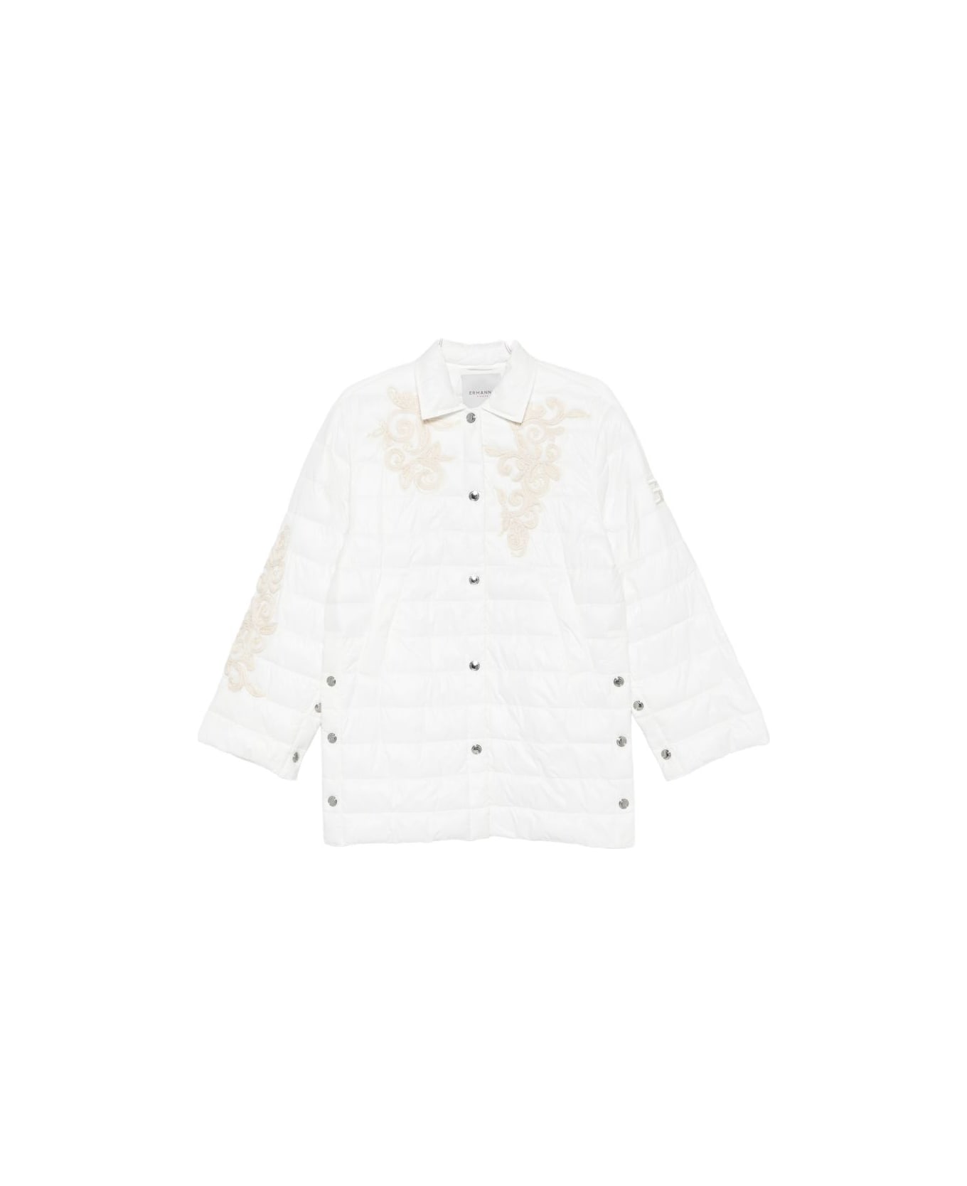 white embroidery quilted press-stud fastening round neck three-quarter length sleeves