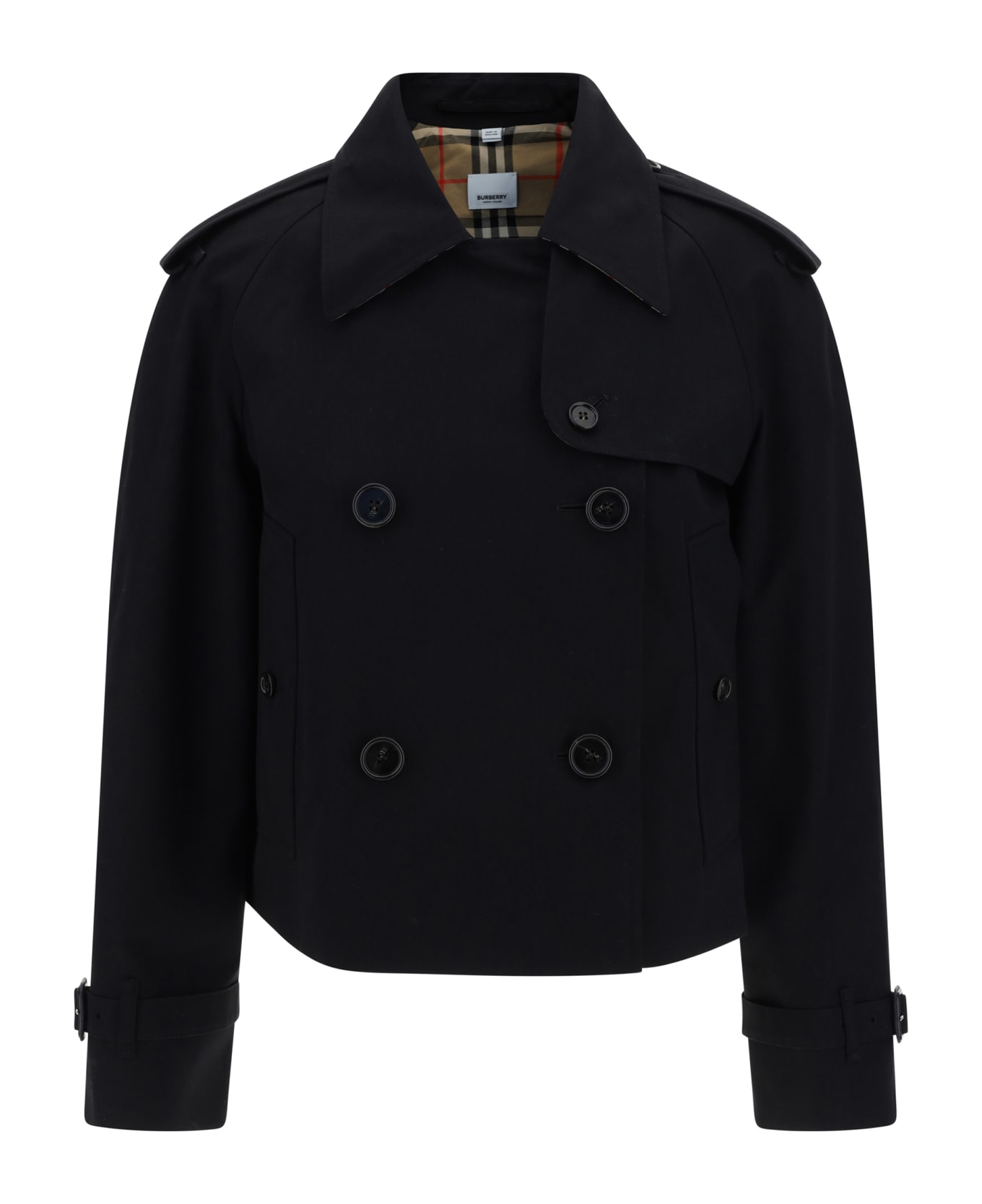 Cotton haltye trench jacket by burberry, cotton gabardine design, an iconic all-over repeated check archivio pattern on the inside, a double-breasted button fastening, a hook-and-eye collar, a windproof flap, two side slit pockets, adjustable buckle cuffs and a regular fit.