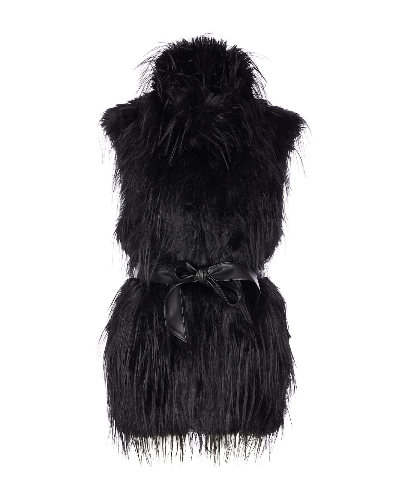 Pinko black faux fur jacket, hooks closure, round neck, long sleeves, cropped model, lateral pockets, belt detail Composition: 100% Polyester